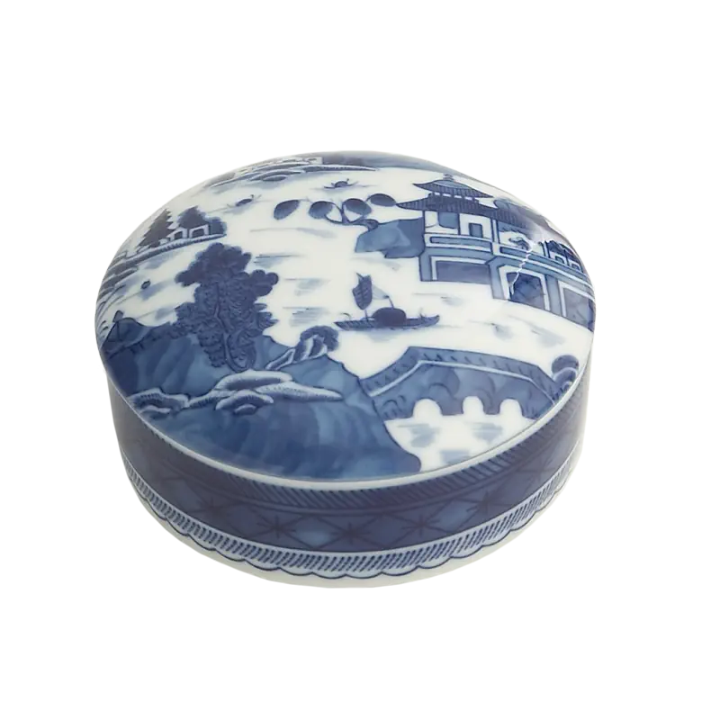 Introducing our Blue Canton Round Covered Box (HC197): a unique combination of classic, timeless charm and modern elegance. Features include: Timeless Elegance: Our Blue Canton Round Covered Box is a classic rendition of Historic Charleston's iconic design, perfect for collectors and home décor enthusiasts alike. Contemporary Twist: We've reinvented the traditional Blue Canton design, modernizing it to fit today's aesthetic. Versatile Accent Piece: Use it in any room: living, bedroom, or kitchen, it's a piece of timeless character and charm. Quality Craftsmanship: Crafted with precision and attention to detail, this box is built to last. Thoughtful Gift: A perfect present for special occasions like weddings, anniversaries, or housewarmings. Add timeless beauty and modern style to your home with the Blue Canton Round Covered Box. Get yours today!