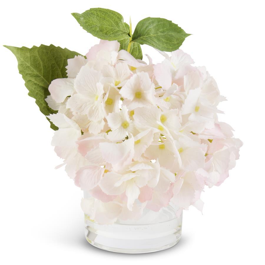 8 INCH REAL TOUCH HYDRANGEA IN GLASS VASE