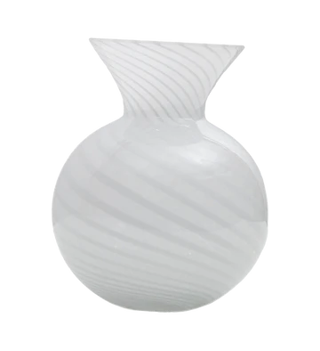 Available in vibrant Blue and crisp White, the vase can be used alone or paired with other decorative pieces to create a curated display. Perfect for tabletops, mantels, windowsills, or shelves, it turns even the simplest flower into a striking accent. Its compact size of 4.5 inches in diameter and 5.5 inches in height makes it versatile and easy to style, while its 1.4-pound weight provides stability without being cumbersome. Hand washing is recommended to maintain the clarity and finish of the glass, ensuring it remains a treasured part of your décor for years to come.