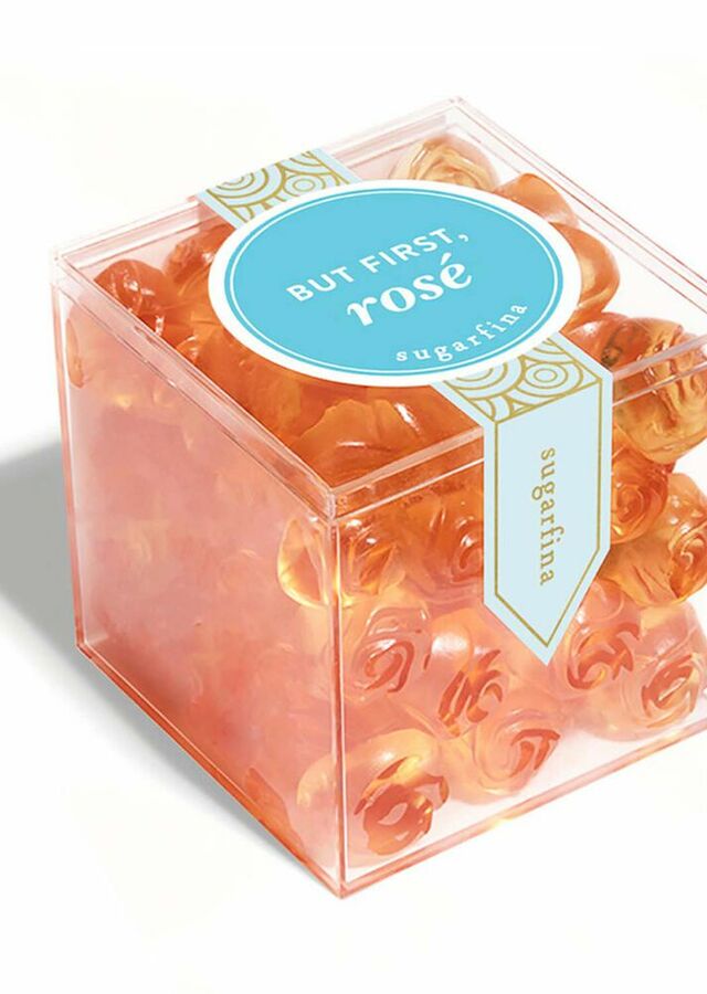 Elevate your candy experience with Sugarfina’s But First, Rosé Roses Gummies, a sophisticated confection infused with real Rosé wine from the sun-drenched vineyards of Provence. These exquisite gummies are delicately shaped like blooming roses, capturing the elegance of your favorite wine in a sweet, soft, and subtly tart treat. Each bite offers notes of crisp rosé, floral hints, and a touch of effervescence, creating a refreshingly grown-up indulgence that's as beautiful as it is delicious.