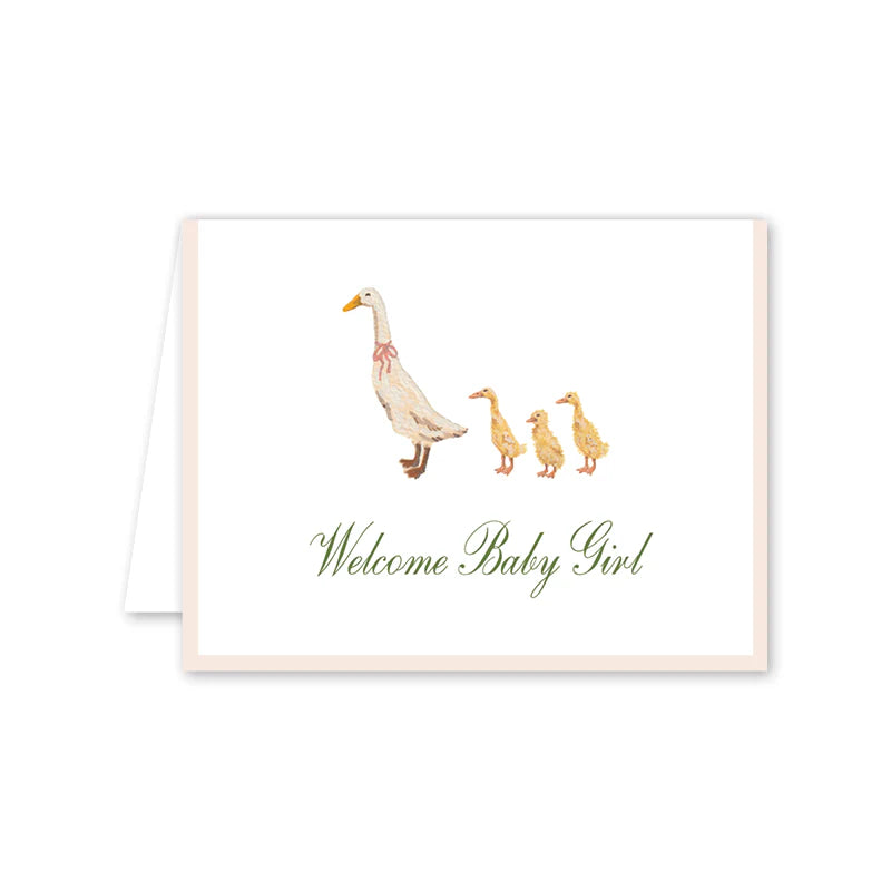 Printed on luxuriously thick 120 lb Mohawk Eggshell White Paper, the card offers a smooth, velvety texture and elegant presentation. The flat printing enhances the softness of the illustration, while the blank interior provides plenty of space for a heartfelt handwritten message. Measuring 4.25 by 5.5 inches, the A2 bi-fold card comes paired with a coordinating blank Eggshell White envelope, ready to slip into a baby shower gift, nursery display, or thoughtful post.