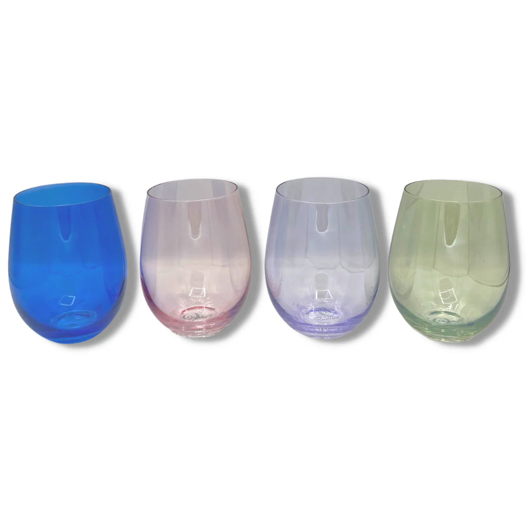 Standing at 4.75 inches tall with a generous 16-ounce capacity, it accommodates a variety of beverages beyond wine — think sparkling water with citrus, craft cocktails, sangria, or even a layered dessert parfait. Each glass is crafted from high-quality, colored glass that’s infused with pigment rather than coated, ensuring long-lasting brilliance that won’t chip or fade with use. The Carnival collection is all about mixing, matching, and creating your own vibrant story at the table, and this stemless glass is the perfect canvas for casual moments and elegant occasions alike.