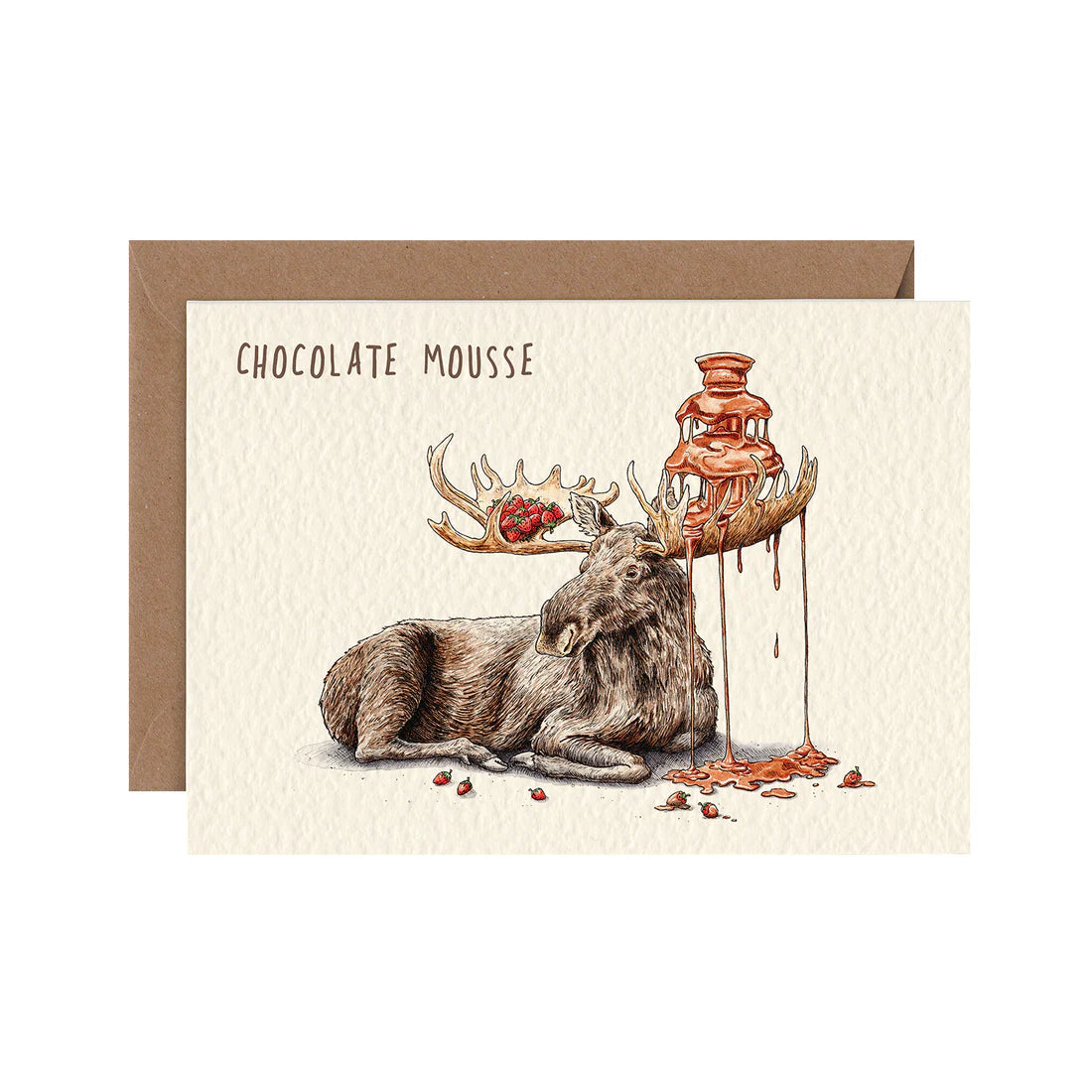 Indulge the senses of your favorite chocolate aficionado with our delectable Chocolate Mousse Greeting Card, inspired by the divine experience of savoring this decadent dessert served with strawberries from Antlers.