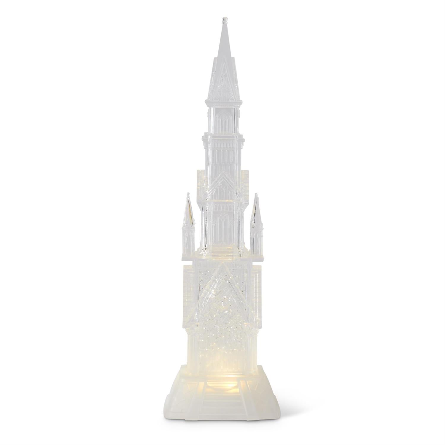 CLEAR ACRYLIC SWIRLING GLITTER LED CHURCH SNOW GLOBE
