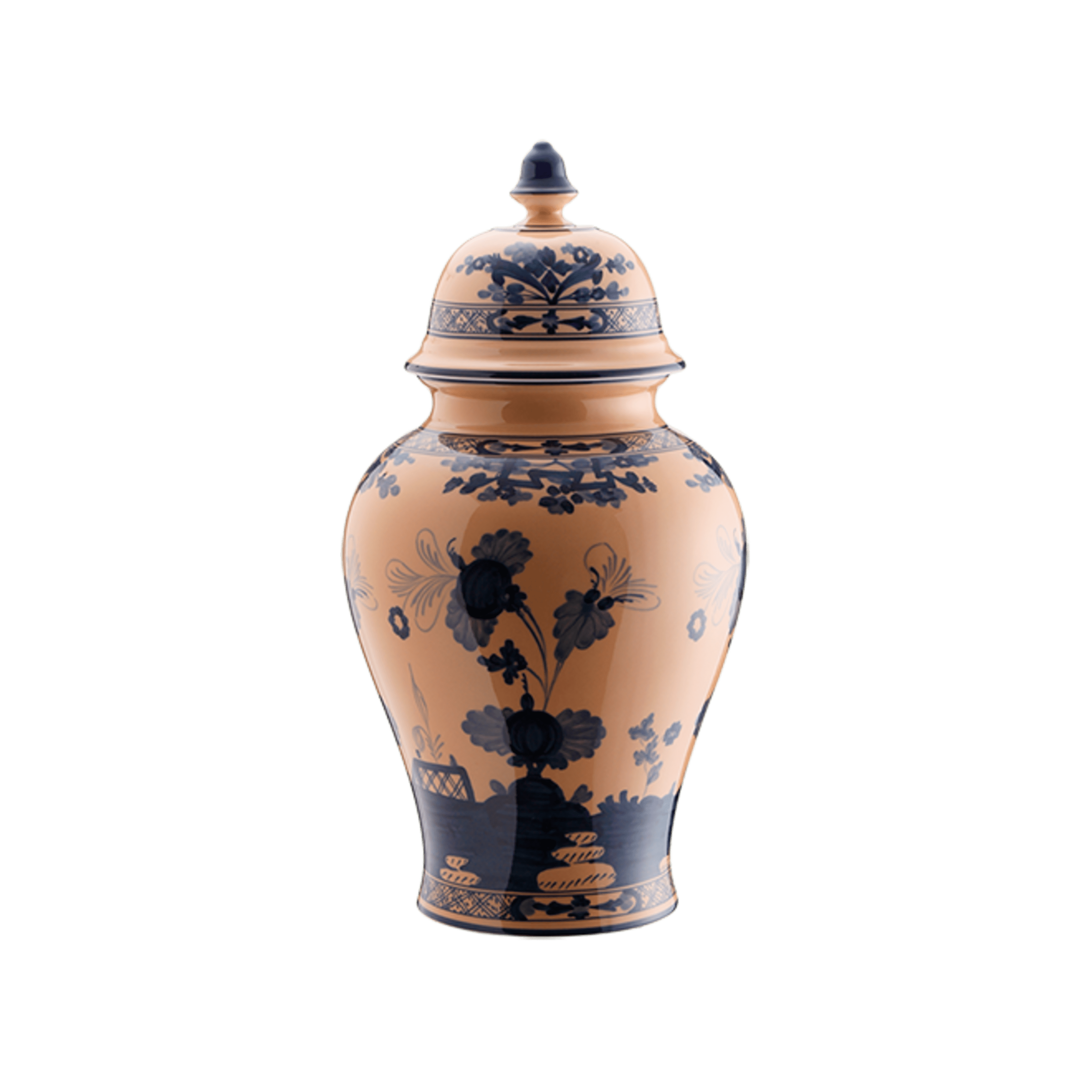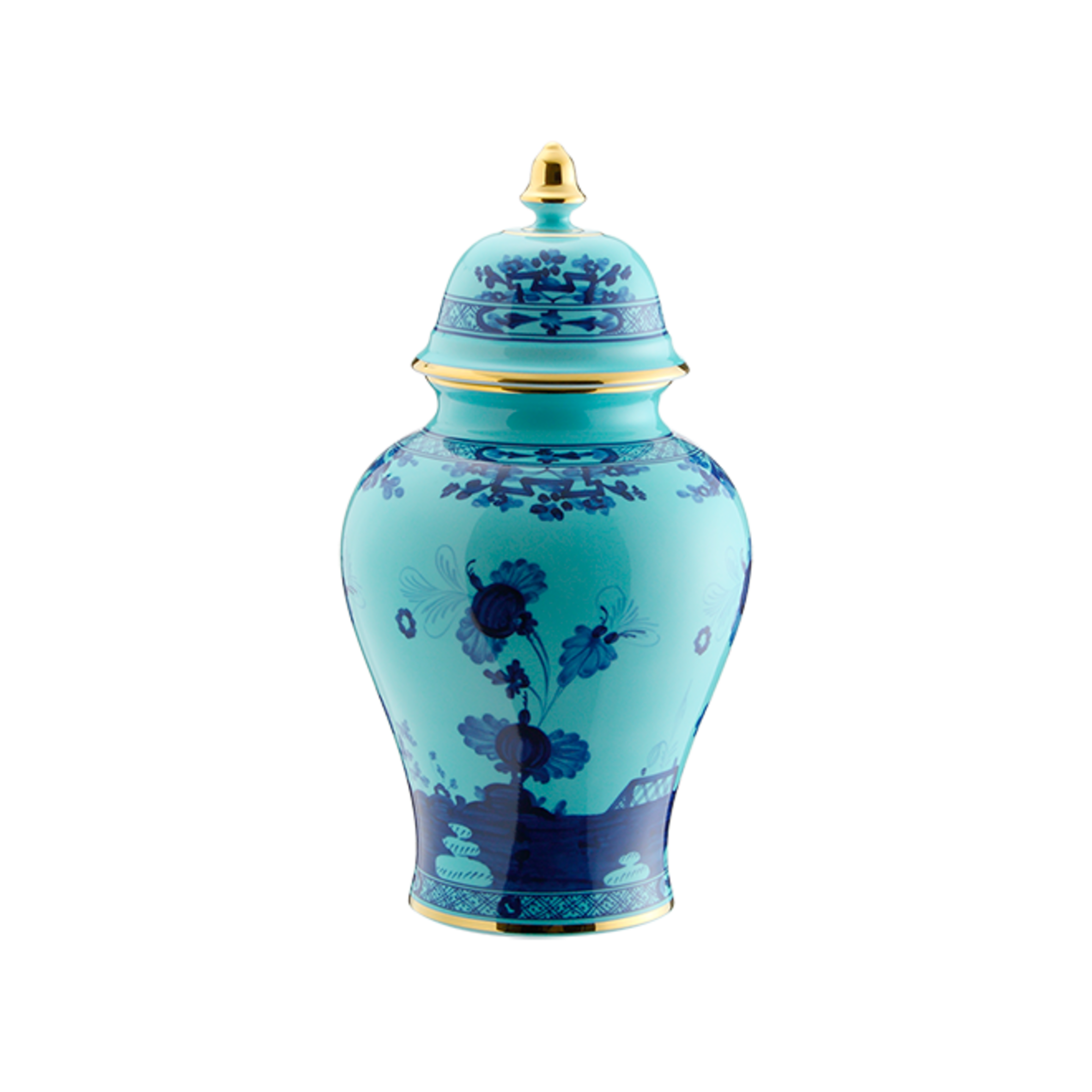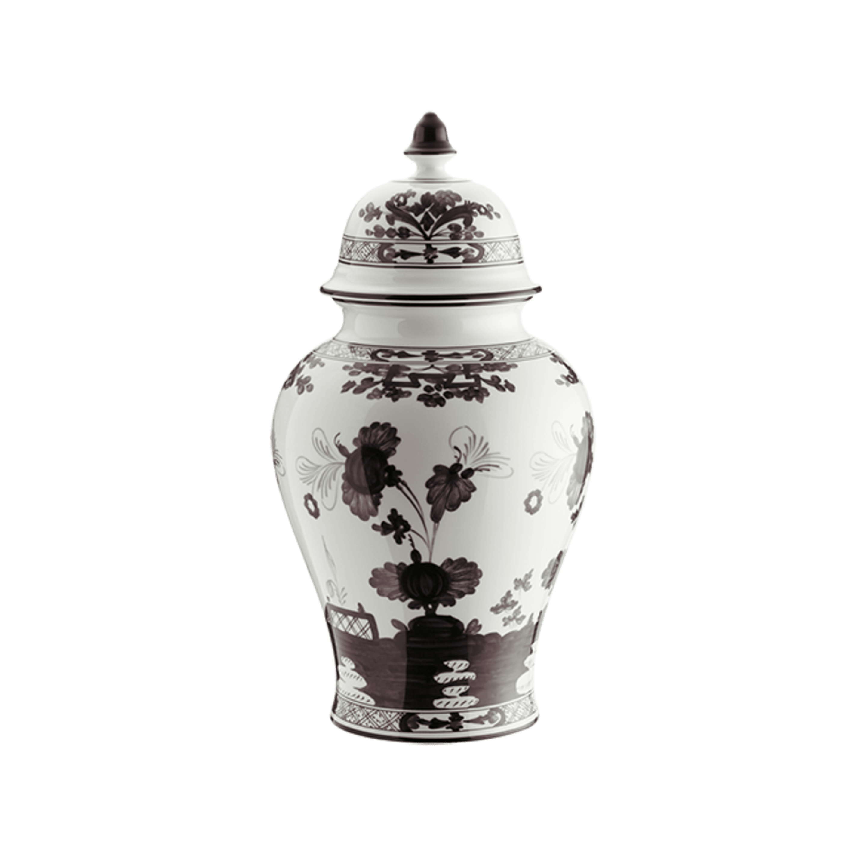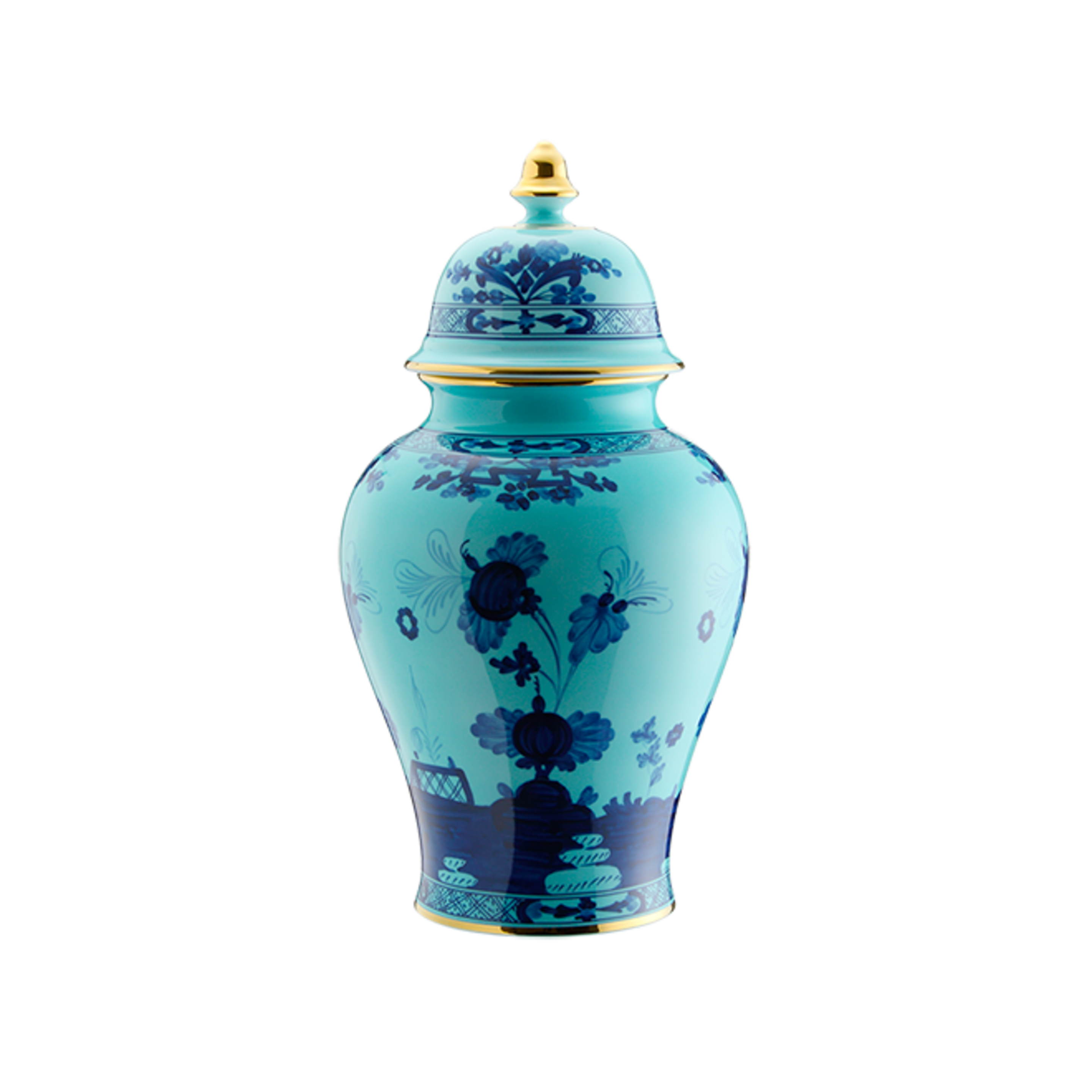 Porcelan Potiche Vase from Oriente Italiano collection. Imbued with timeless appeal, the Oriente Italiano collection from Richard Ginori merges exotic beauty with contemporary Italian luxury. Designed by the legendary architect Gio Ponti in 1946 and exuding 18th Century inspiration from the Far East and Florentine ceramics. The Oriente Italiano collection is where airbrush and color fantasy create a wonderful decorative interweaving, exquisitely crafted in Italy from fine porcelain by Ginori’s expert hands.