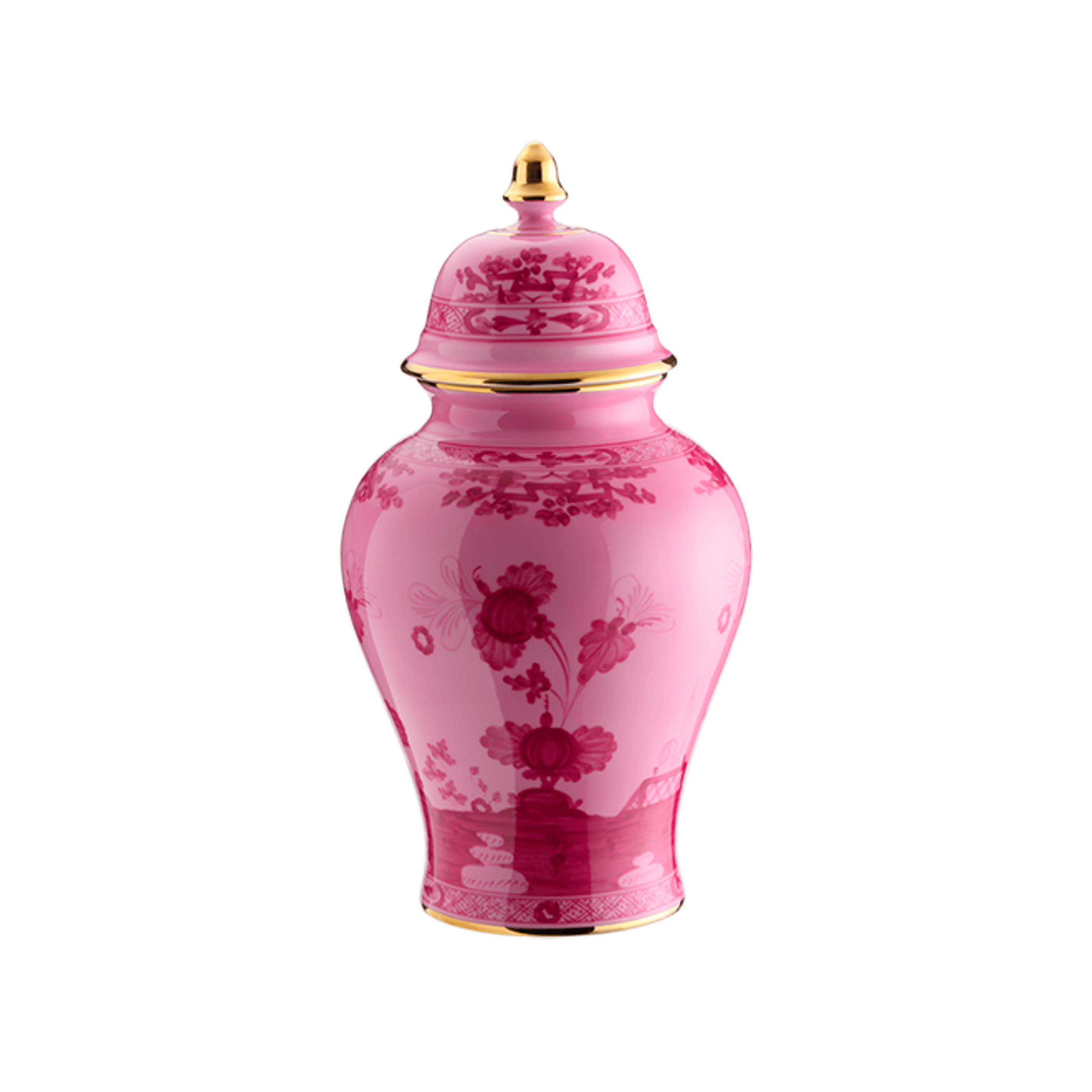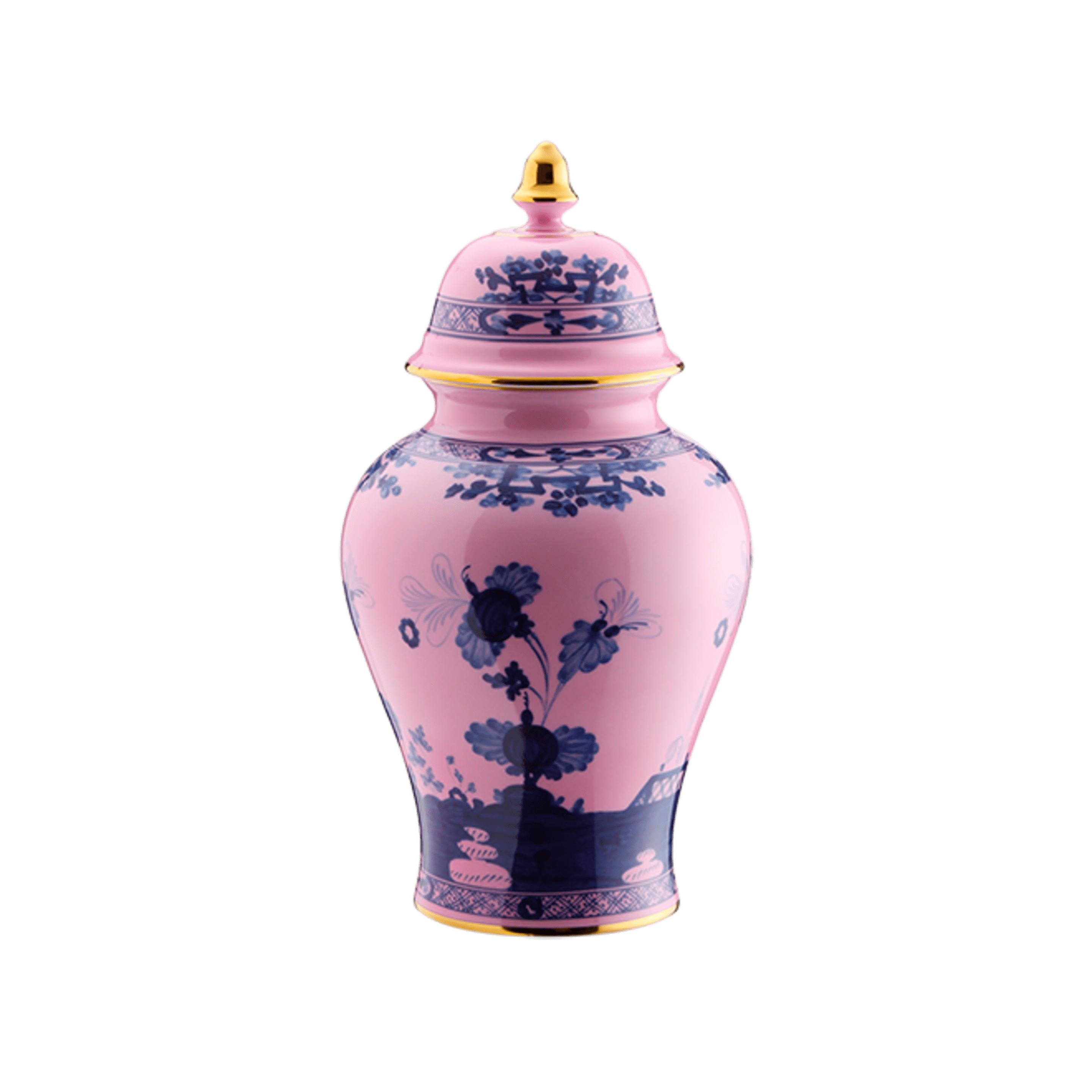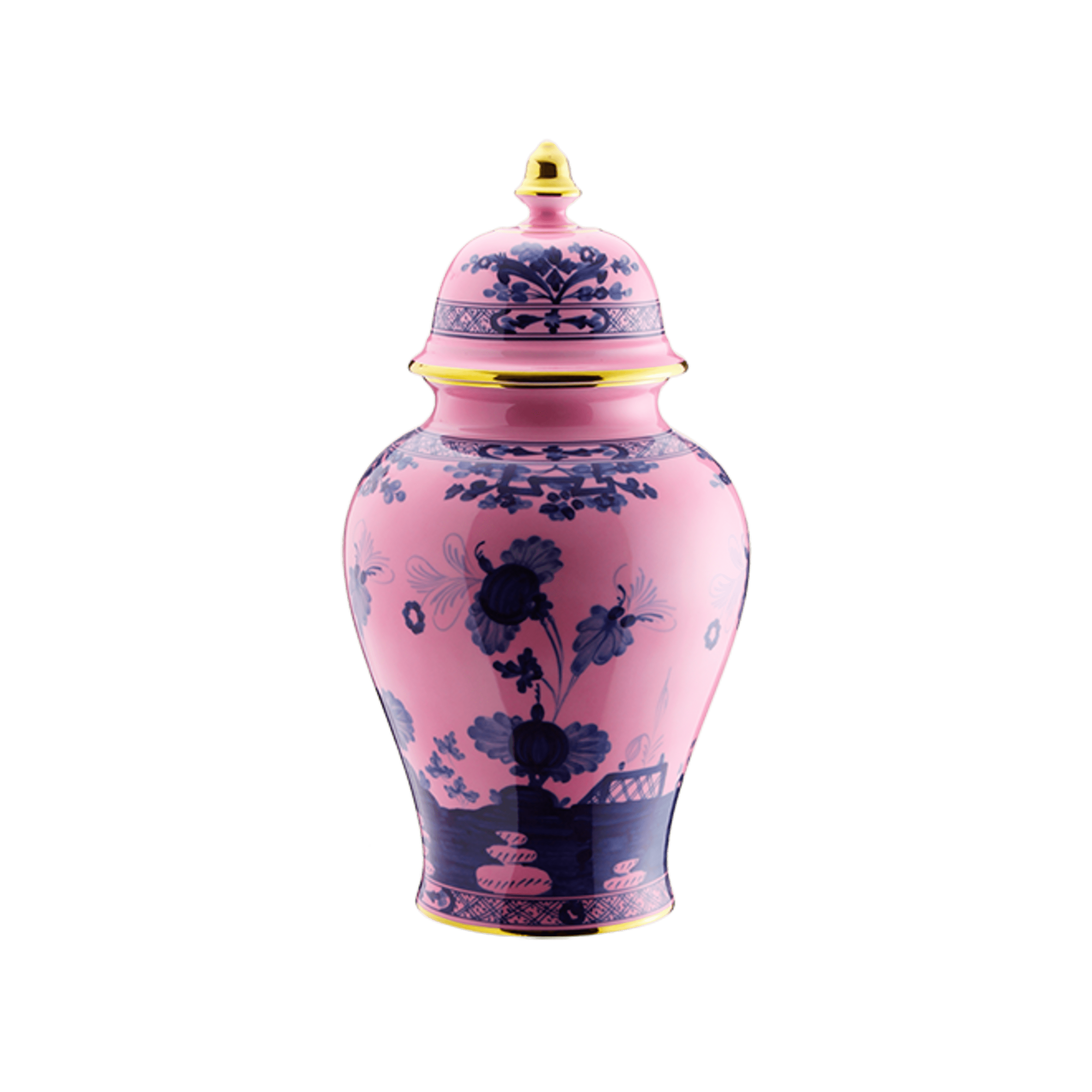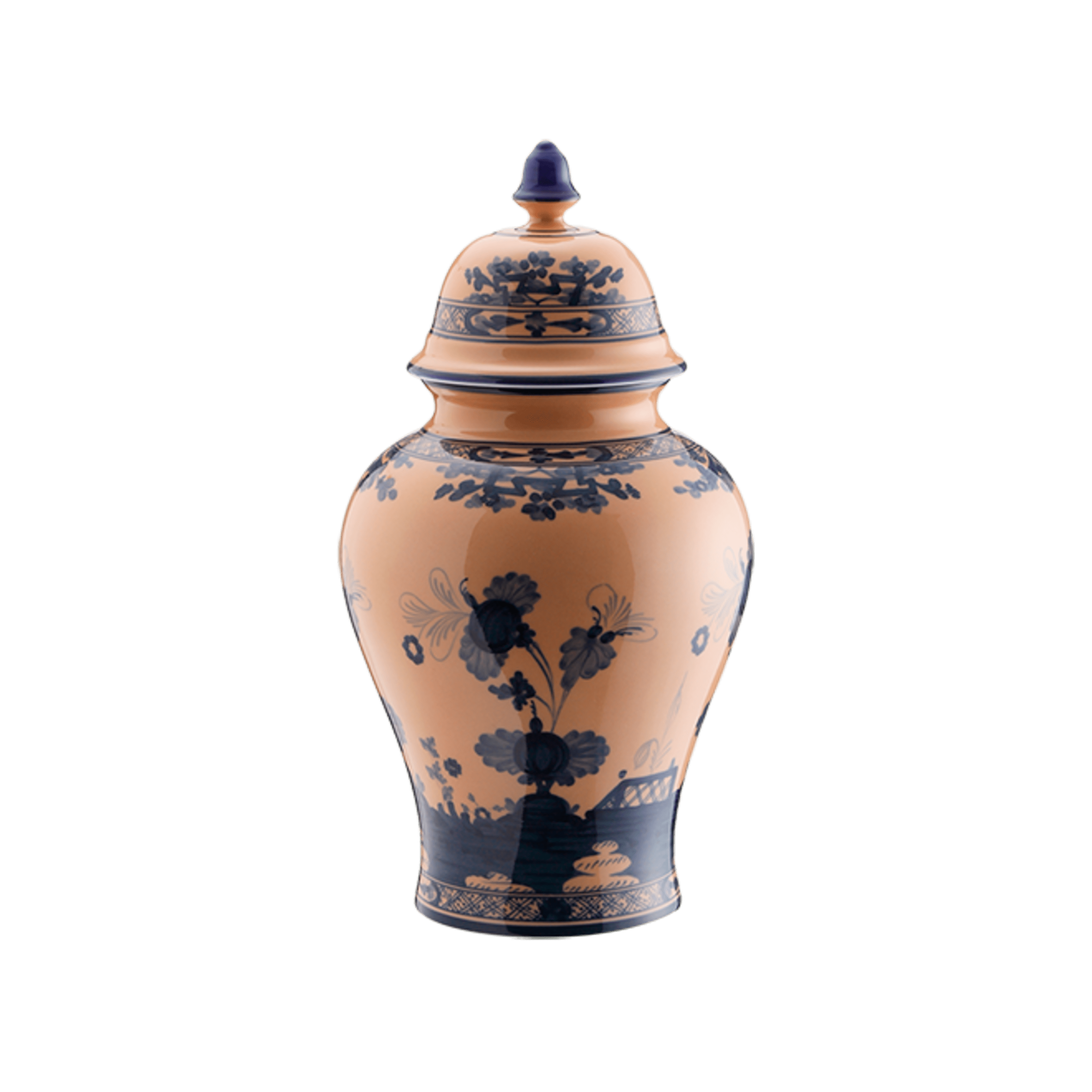 Porcelan Potiche Vase from Oriente Italiano collection. Imbued with timeless appeal, the Oriente Italiano collection from Richard Ginori merges exotic beauty with contemporary Italian luxury. Designed by the legendary architect Gio Ponti in 1946 and exuding 18th Century inspiration from the Far East and Florentine ceramics. The Oriente Italiano collection is where airbrush and color fantasy create a wonderful decorative interweaving, exquisitely crafted in Italy from fine porcelain by Ginori’s expert hands.