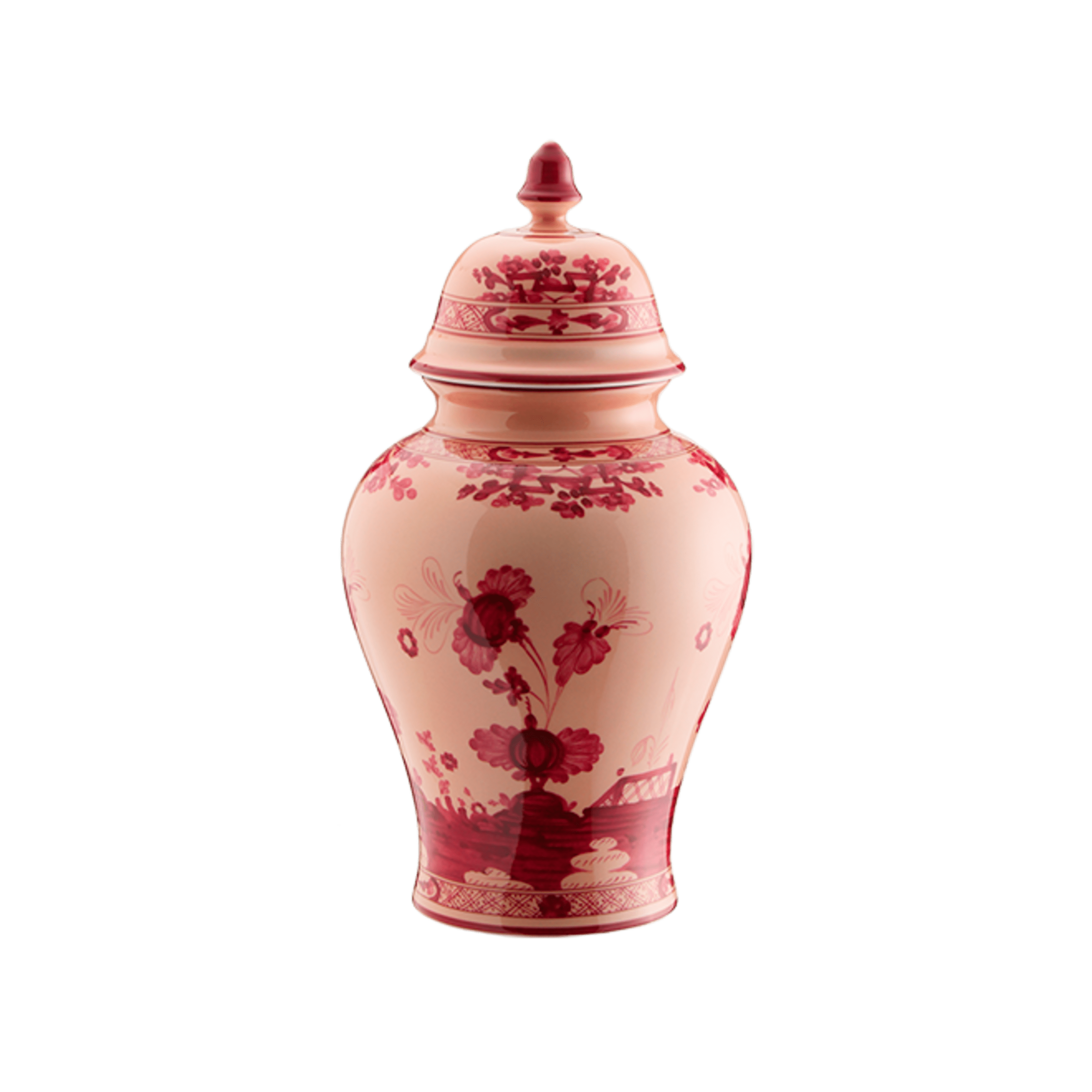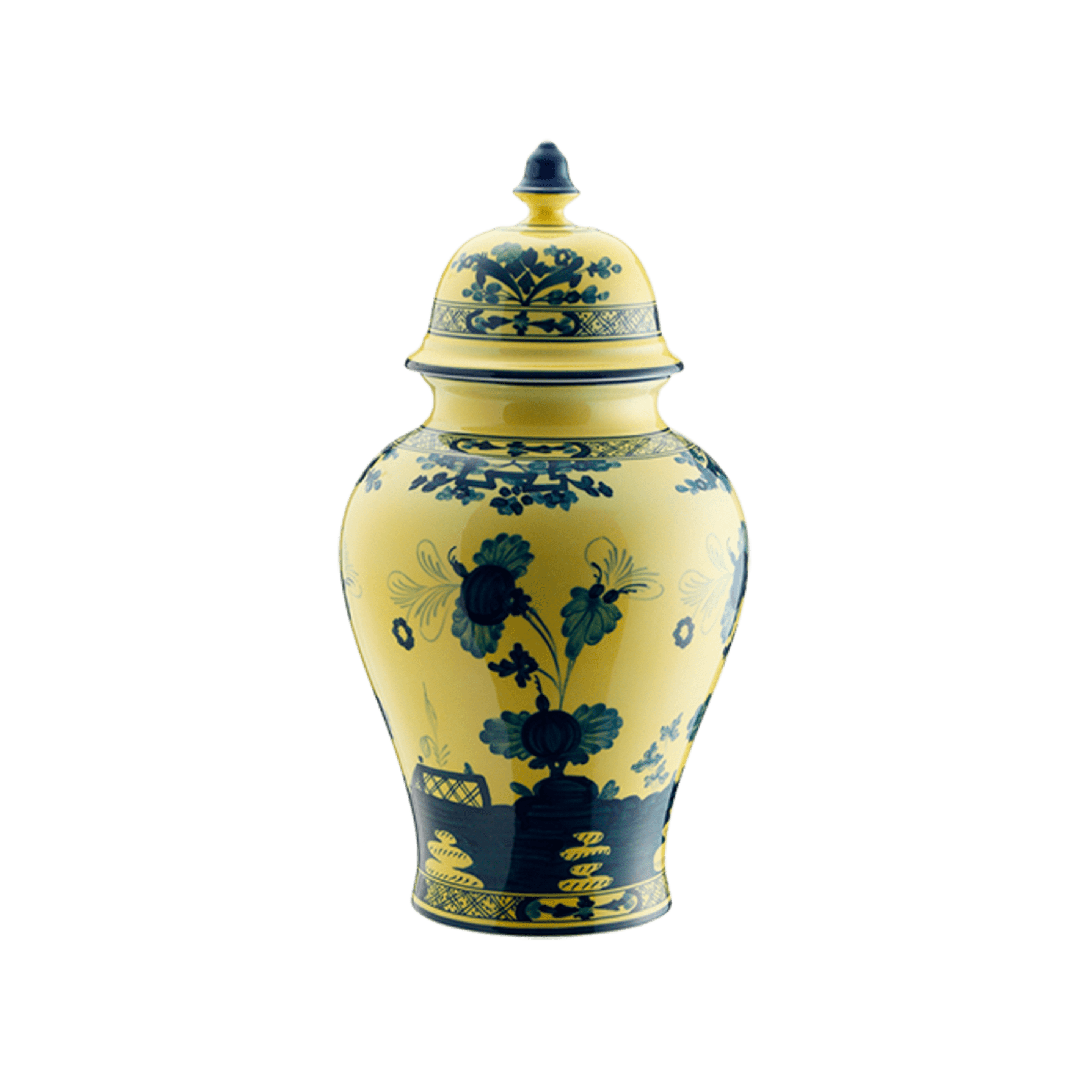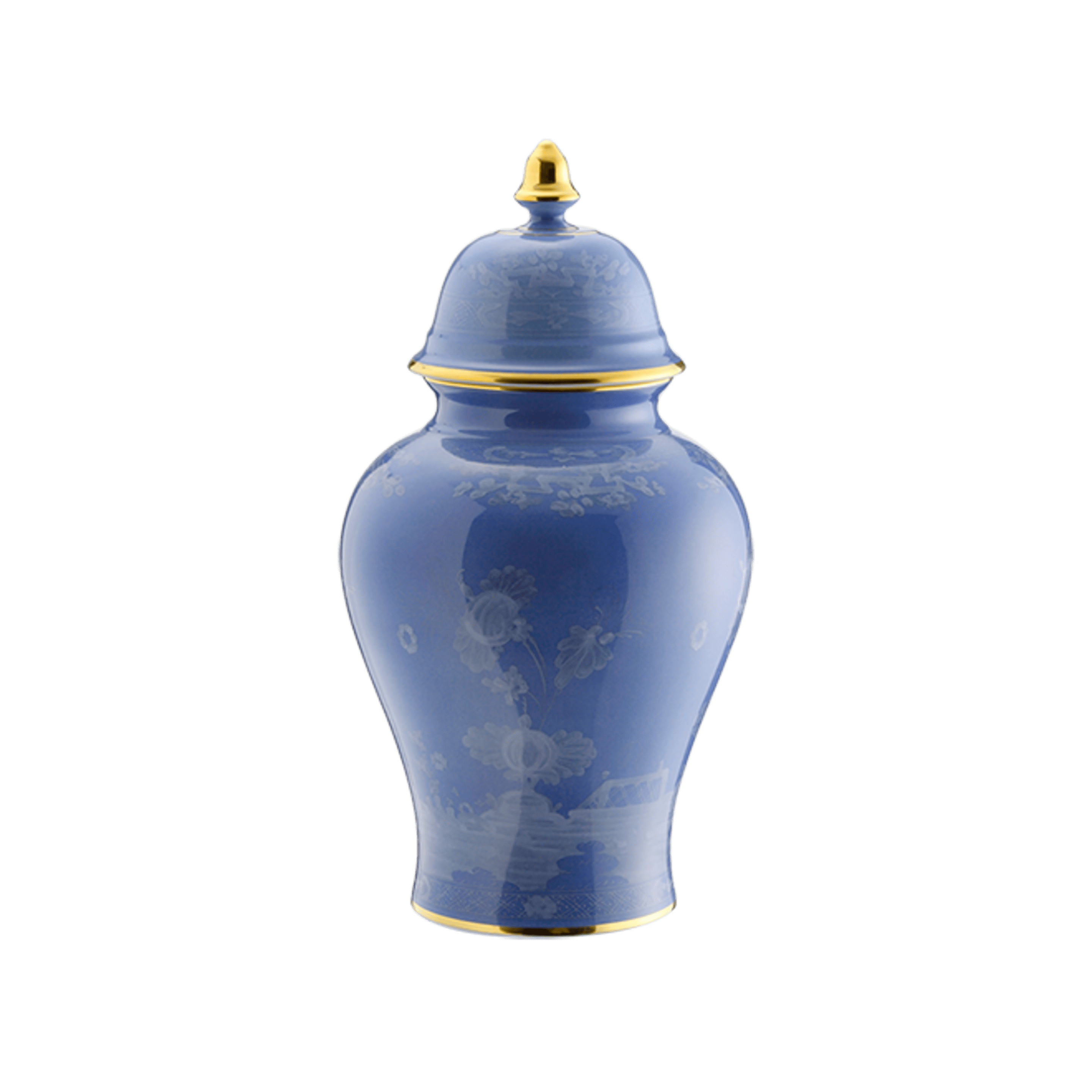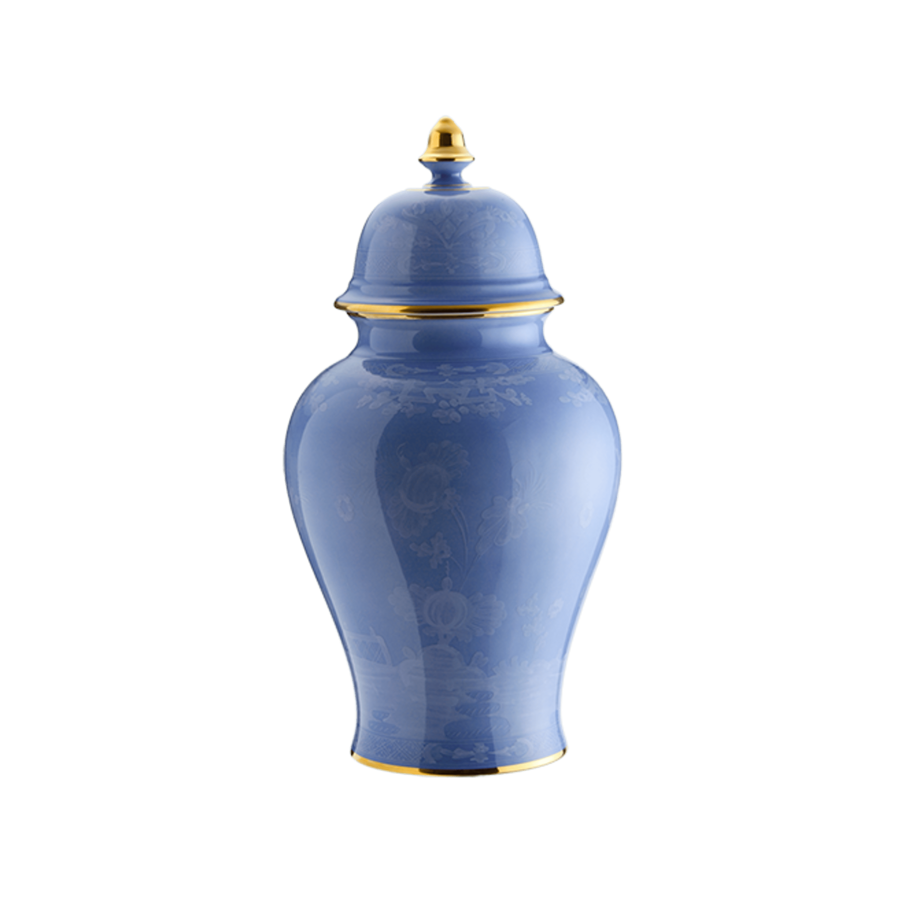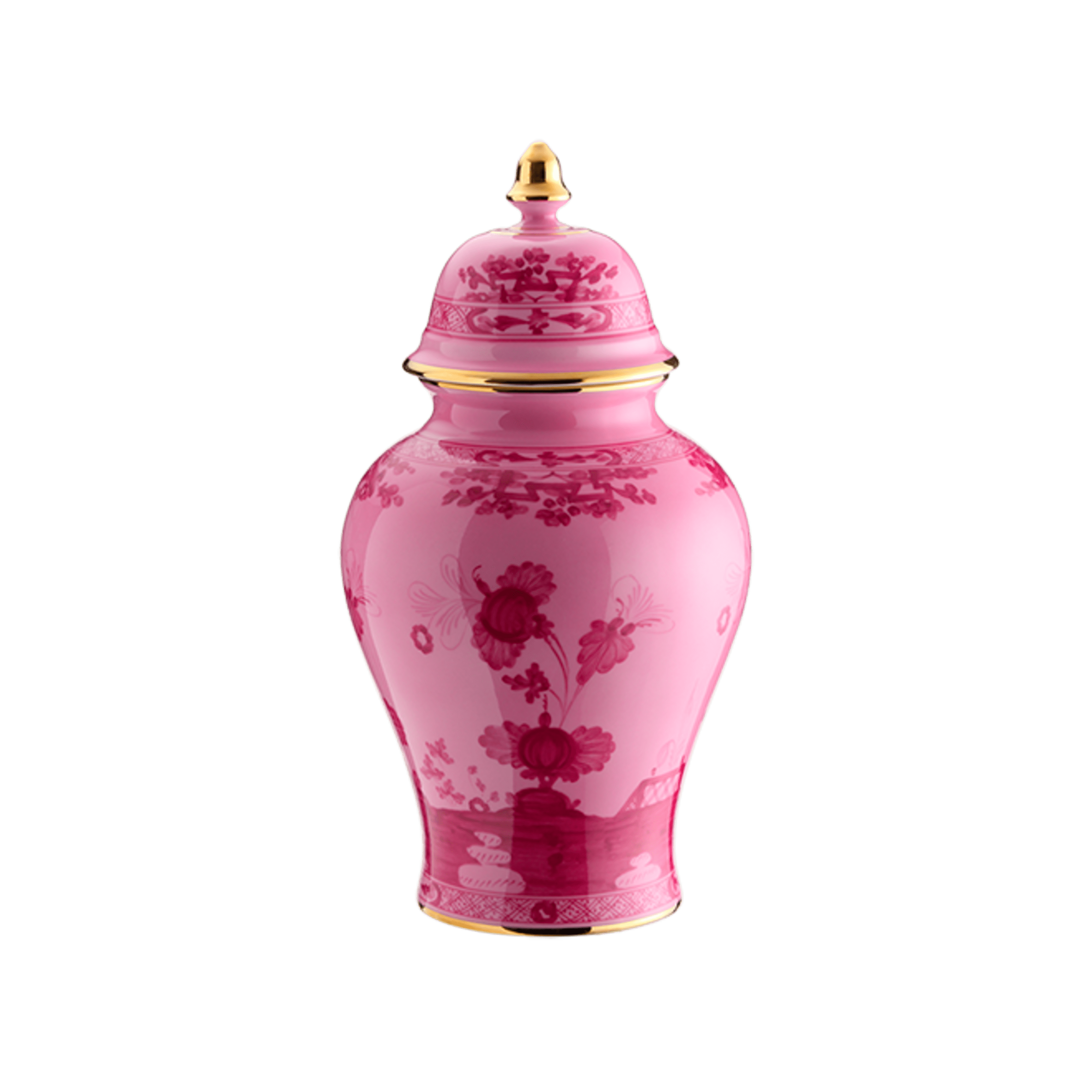 Porcelan Potiche Vase from Oriente Italiano collection. Imbued with timeless appeal, the Oriente Italiano collection from Richard Ginori merges exotic beauty with contemporary Italian luxury. Designed by the legendary architect Gio Ponti in 1946 and exuding 18th Century inspiration from the Far East and Florentine ceramics. The Oriente Italiano collection is where airbrush and color fantasy create a wonderful decorative interweaving, exquisitely crafted in Italy from fine porcelain by Ginori’s expert hands.