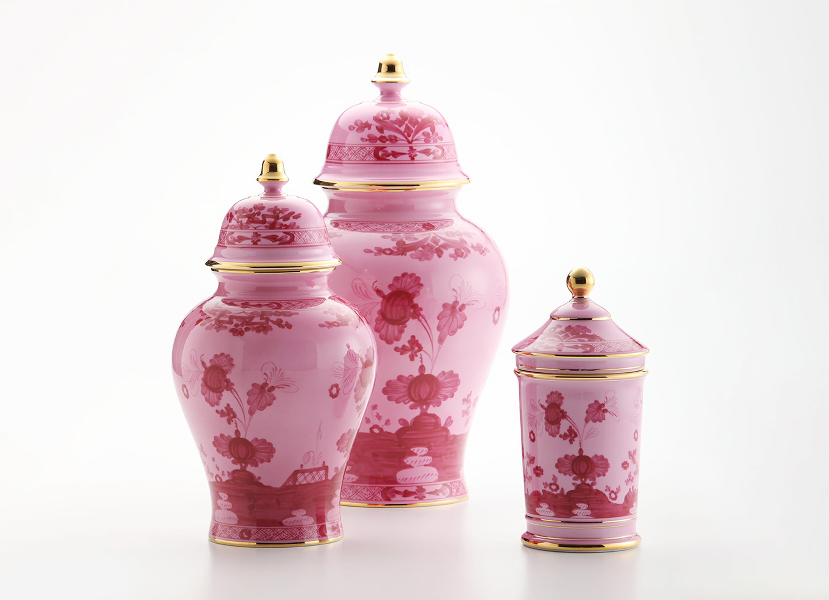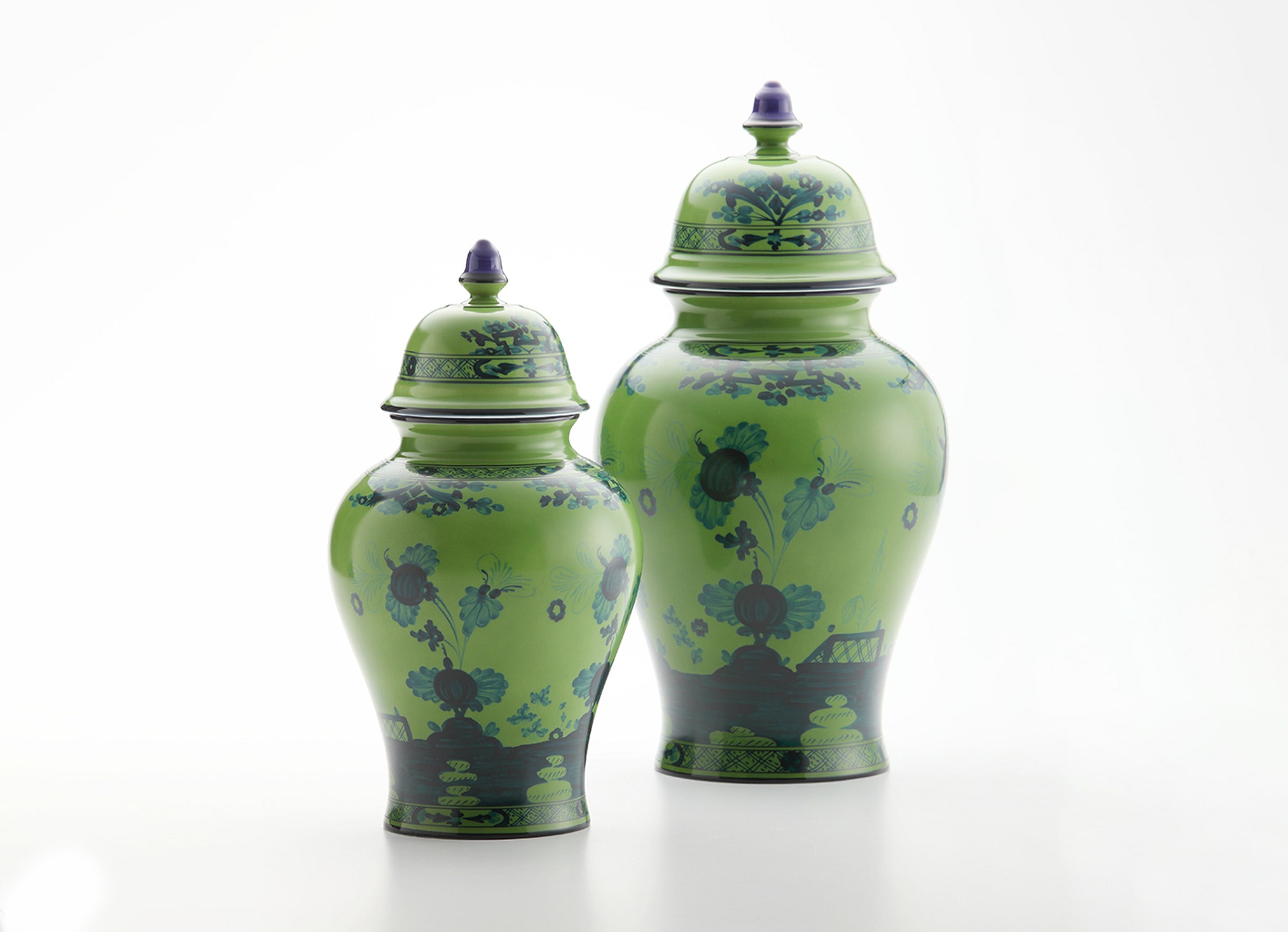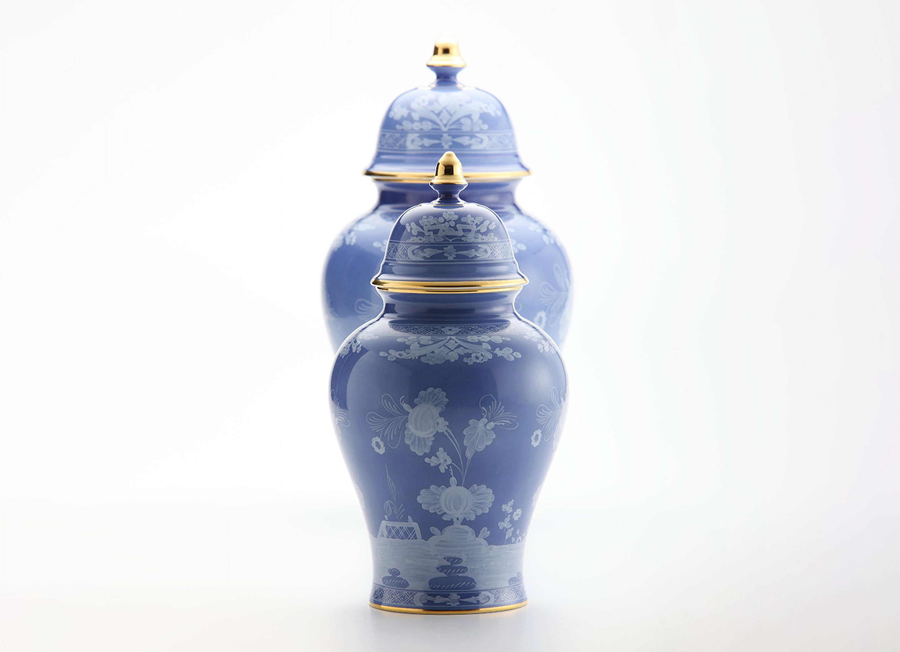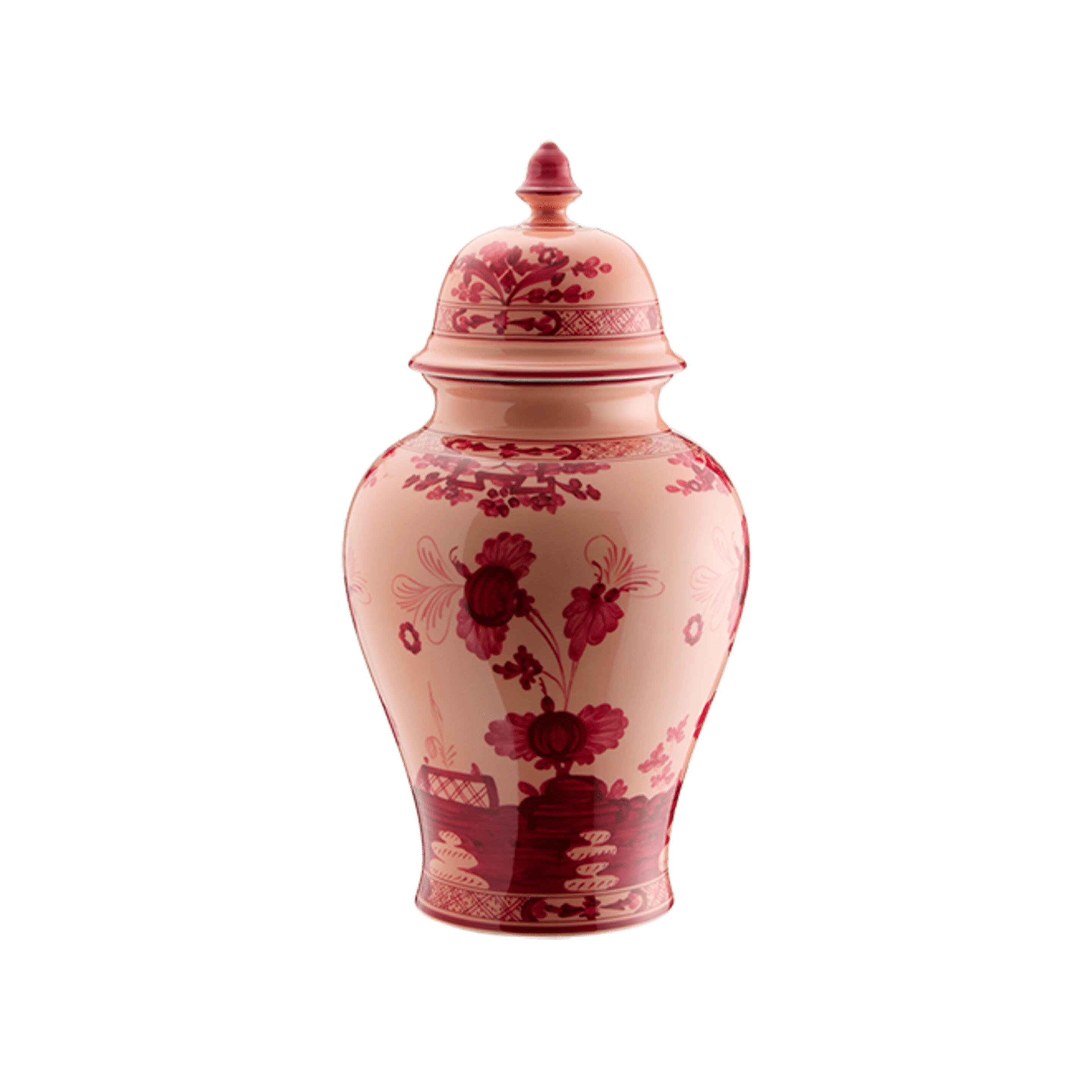 Porcelan Potiche Vase from Oriente Italiano collection. Imbued with timeless appeal, the Oriente Italiano collection from Richard Ginori merges exotic beauty with contemporary Italian luxury. Designed by the legendary architect Gio Ponti in 1946 and exuding 18th Century inspiration from the Far East and Florentine ceramics. The Oriente Italiano collection is where airbrush and color fantasy create a wonderful decorative interweaving, exquisitely crafted in Italy from fine porcelain by Ginori’s expert hands.