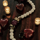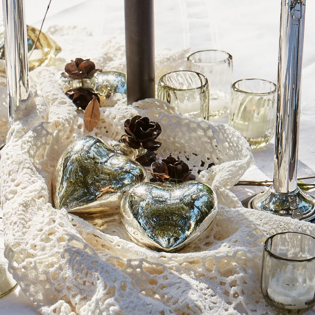 Stunning works of art that add a touch of elegance to your dining experience. Indulge in the sweet charm of love with our sumptuous chocolate heart, symbolizing the warmth and passion of your relationship. Or choose the fiery red glass heart, a bold statement of your intense desire and love. And for the ultimate expression of luxury and class, our platinum and Verde passion hearts, exquisitely crafted with a delicate iron rose, will take your breath away. Add to a place setting for a dinner for two... a symbol of the sweetness of love.