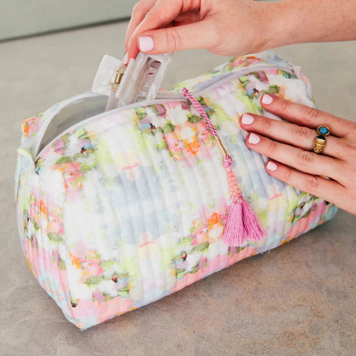Each bag is meticulously crafted in India, embodying the rich heritage of artisanal craftsmanship. Please note that due to the nature of the dyeing process, dye lots may vary from batch to batch, adding a unique touch to every piece. Additionally, minor imperfections may occur, adding to the charm and character of each bag. For maintenance, we recommend hand washing to preserve its pristine condition for years to come. Elevate your travel experience with the Laura Park Cosmetic Bag – where style meets practicality effortlessly.
