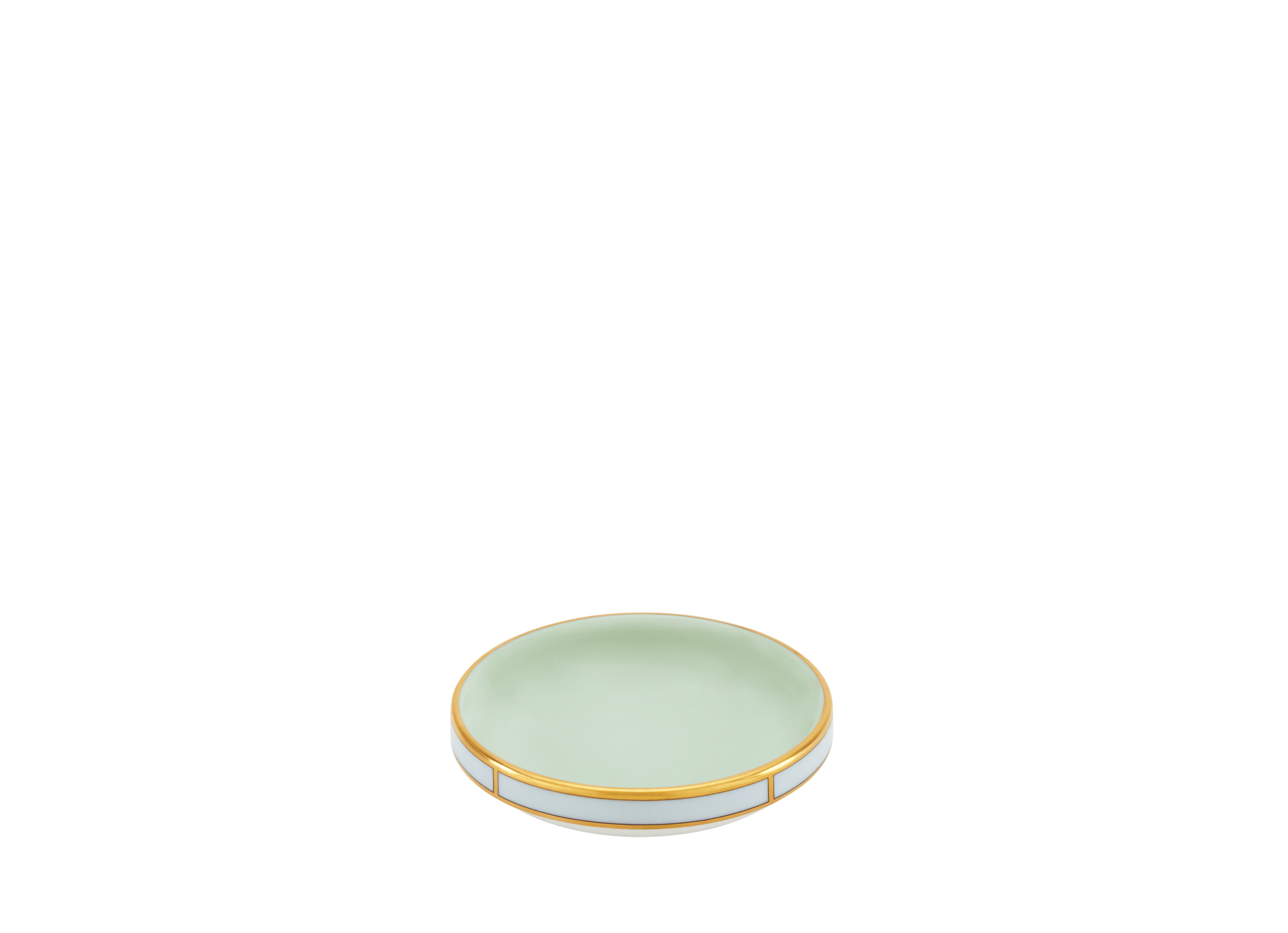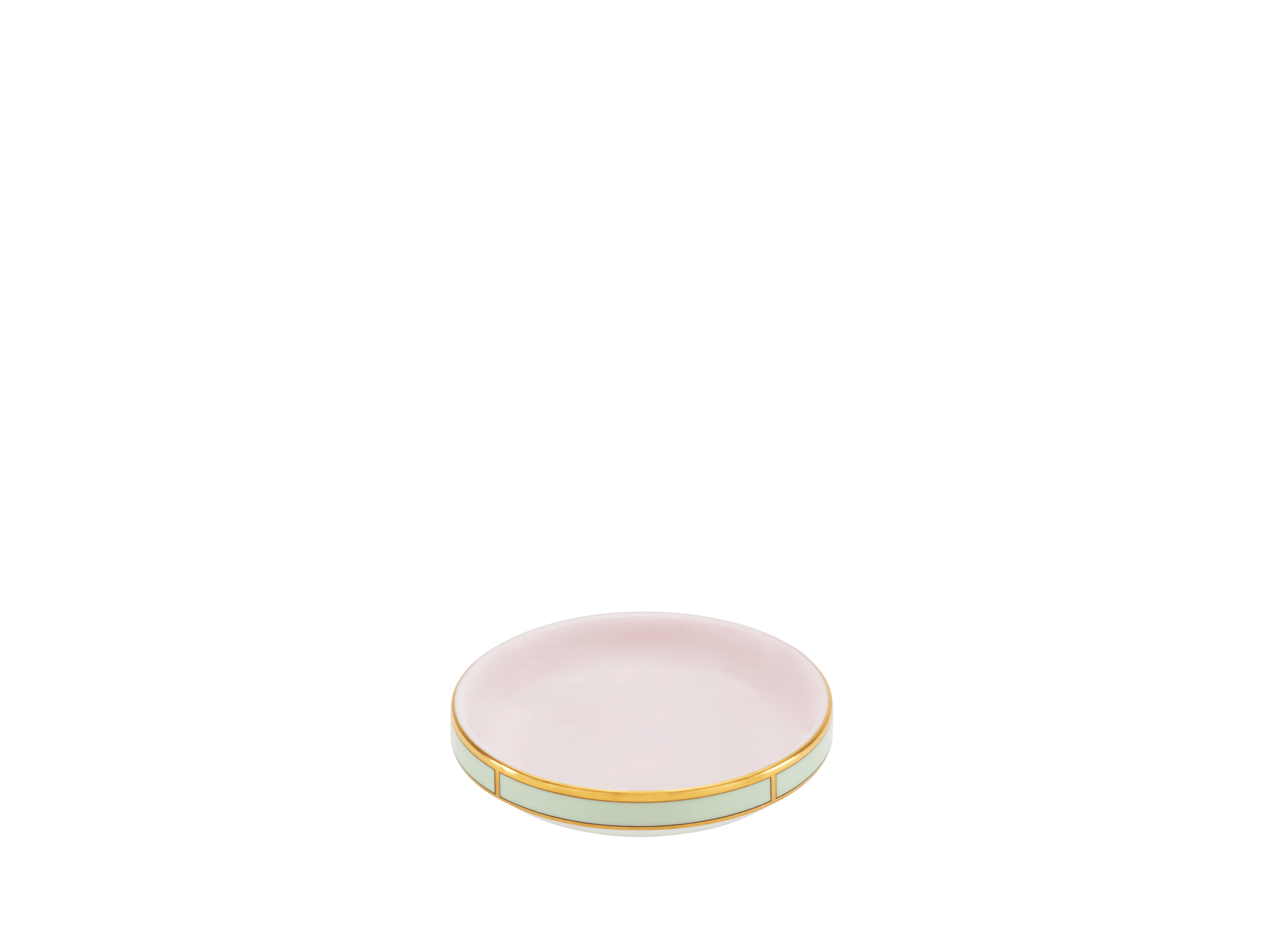 Discover the epitome of sophistication with our Porcelain Butter Dish from the New Diva collection by Ginori 1735. Adorned with contrasting pastel tones and delicate gold threading, this piece exudes timeless elegance and craftsmanship. Compact yet highly functional, perfect for serving cookies or mini desserts independently. When combined with one of our small bowls, transforms into a charming sugar bowl with a lid, enhancing its utility.