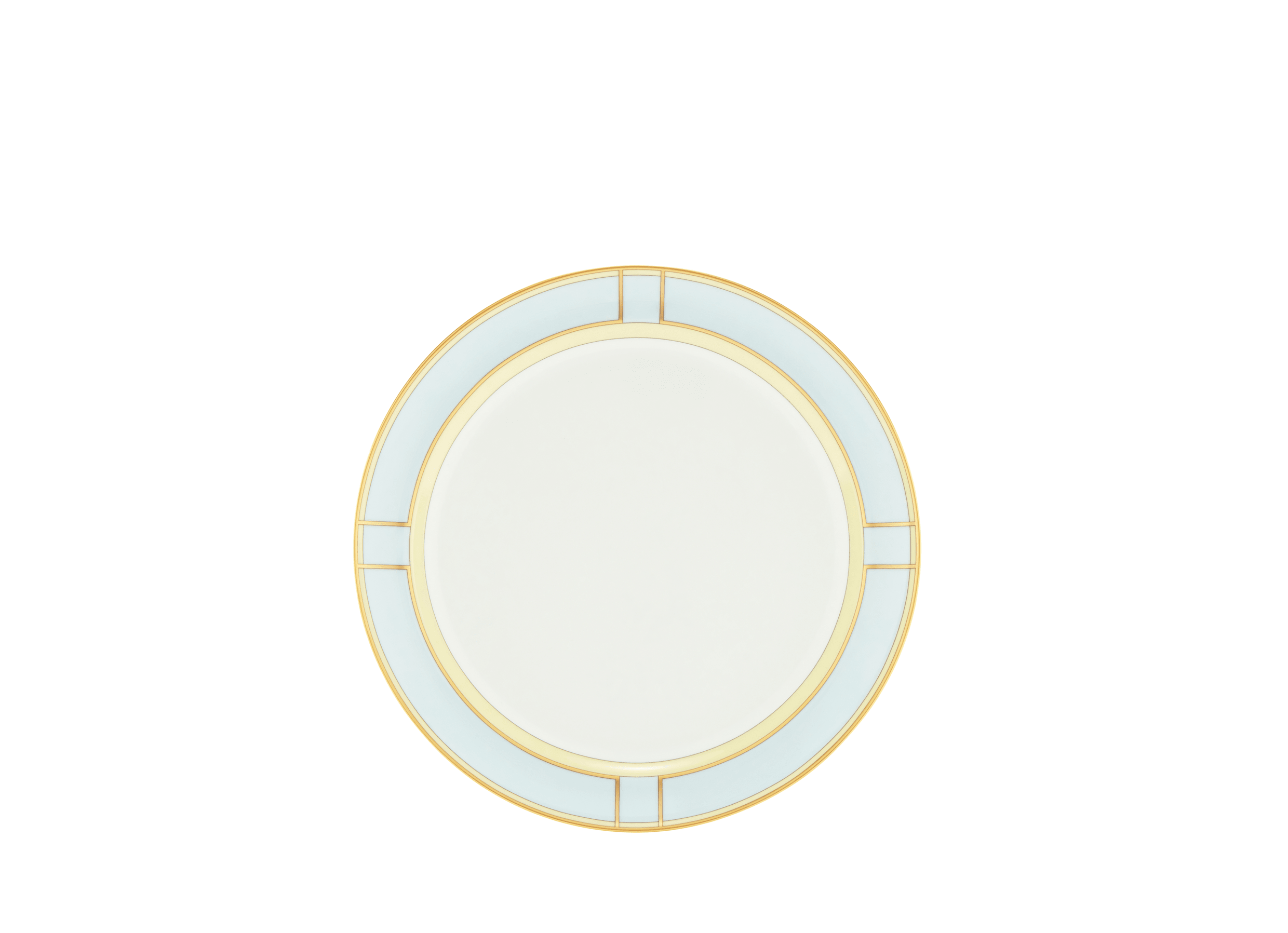 Porcelain Flat Plates with Celeste and Gold decoration. New Diva collection.