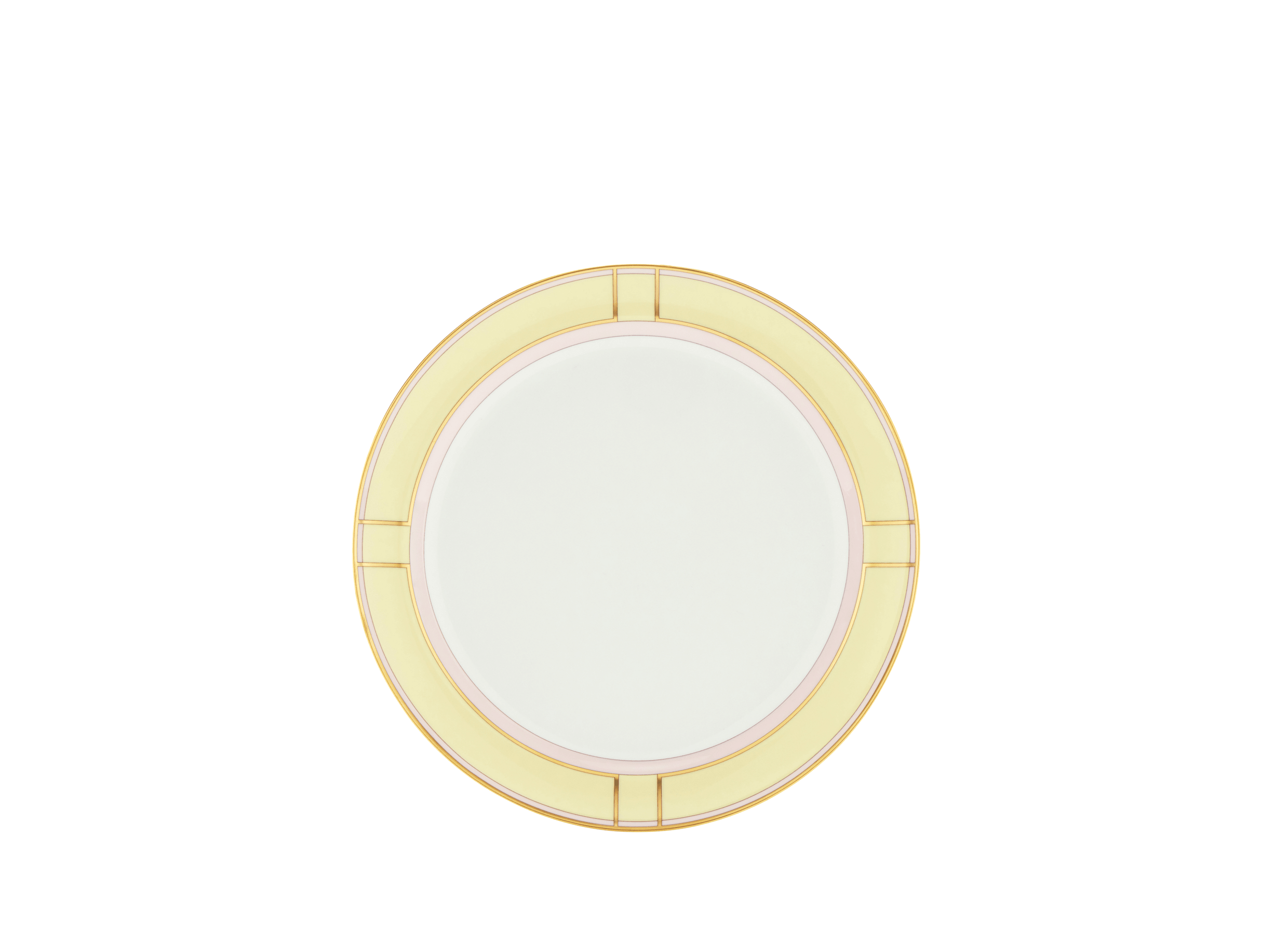 Elevate your dining experience with these exquisite Porcelain Flat Plates from the New Diva collection. Crafted from fine porcelain, these plates are adorned with a delicate sky-blue and yellow motif, gracefully highlighted with intricate gold threading along the edges. Inspired by mid-century Italian aesthetics, these plates feature a timeless design that brings a touch of elegance to any table setting. The sky-blue and yellow motif, complemented by gold embellishments, adds a sophisticated flair. These plates are designed to be part of a complete, stackable service. Pair them with matching soup, bread, and dessert plates from the New Diva collection, available in three other pastel colors, for a harmonious and versatile table setting.