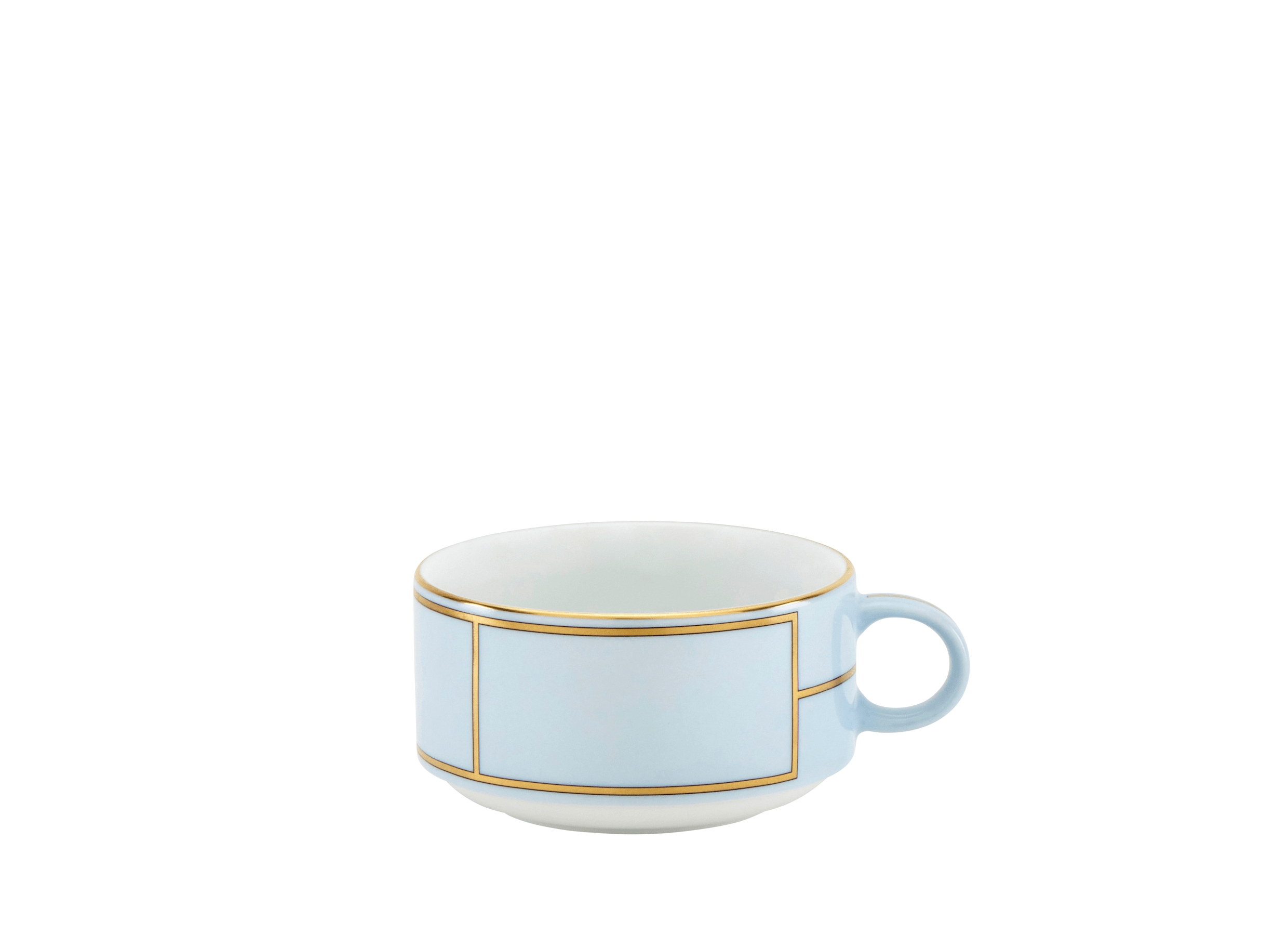 Indulge in the elegance of the New Diva collection with these exquisitely designed porcelain tea cups. Featuring a sophisticated sky-blue (Celeste) decoration and adorned with delicate gold threading, these cups are a true testament to refined craftsmanship.