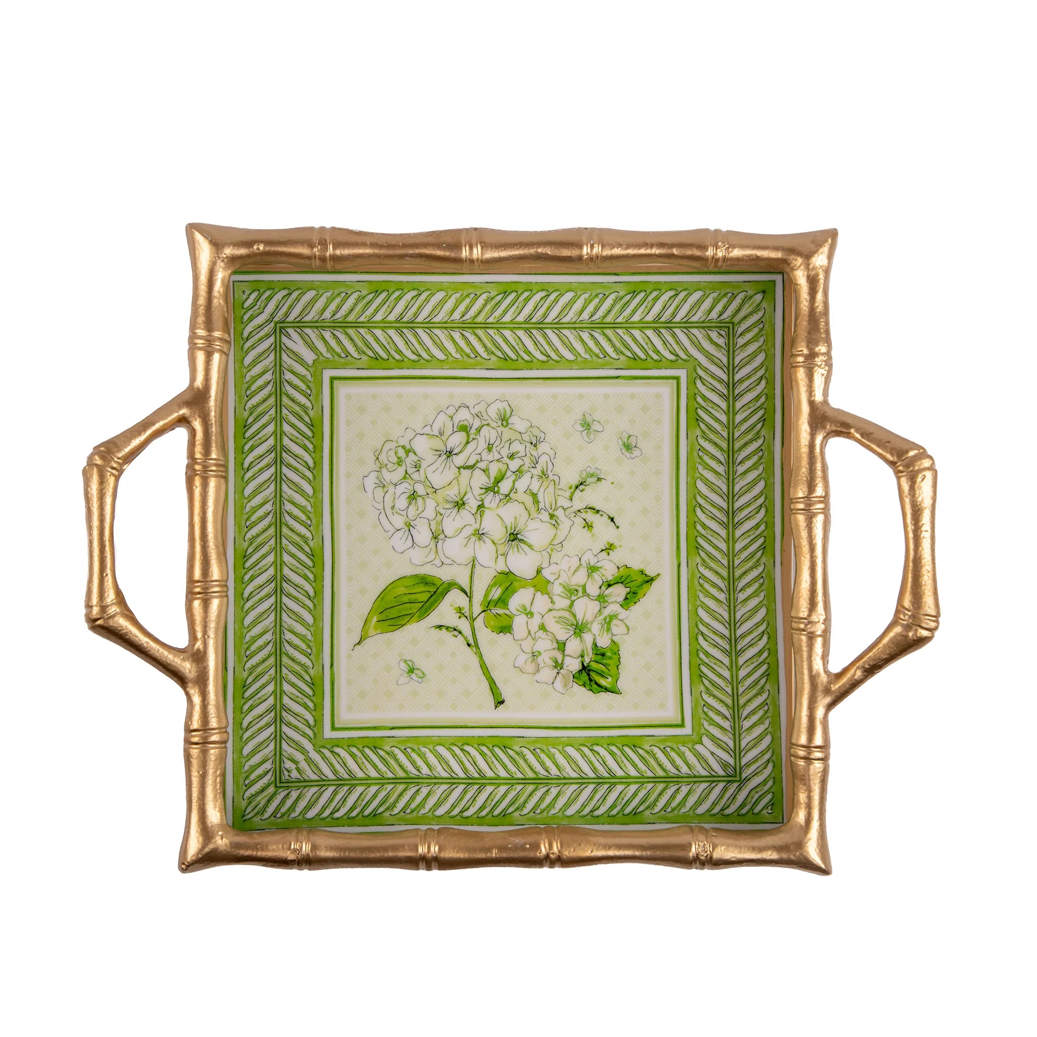 These trays exude sophistication with their exquisite hand-carved gold bamboo trim and side handles, adding a touch of opulence to any space. Immerse yourself in the beauty of these intricately crafted decorative & serving trays, perfect for displaying your cherished items with elegance and style.