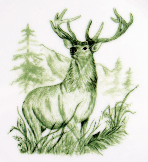 This plate showcases a breathtaking forest illustration, featuring a majestic buck and intricate pine cones in lush green shades. Its natural design brings warmth and charm to any table setting. Serving hearty meals or elegant salads is effortless with this plate, making it a great choice for everyday dining, holiday feasts, or special events. Skilled artisans create each piece, guaranteeing unique designs. The high-fired porcelain not only enhances its beauty, but also makes it durable against chipping and scratching.