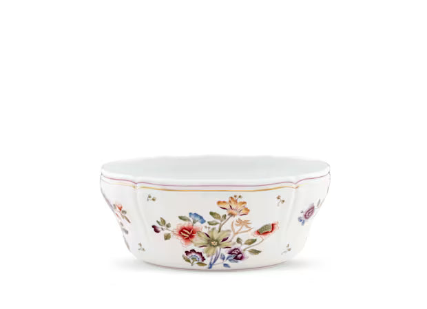 Salad bowl with floral decoration and pure gold threading. Granduca Coreana collection.