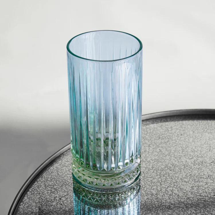 With its chic fluted silhouette and jewel-like detailing, the tumbler combines shimmering blue and green hues in a way that evokes the soft blending of watercolor paints. The result is a glass that feels both playful and refined, perfect for adding a bit of artistry to everyday moments or entertaining guests in style. Whether you're building a coordinated set or mixing colors for an eclectic look, the Aquarelle Tumbler invites you to get creative with your glassware.