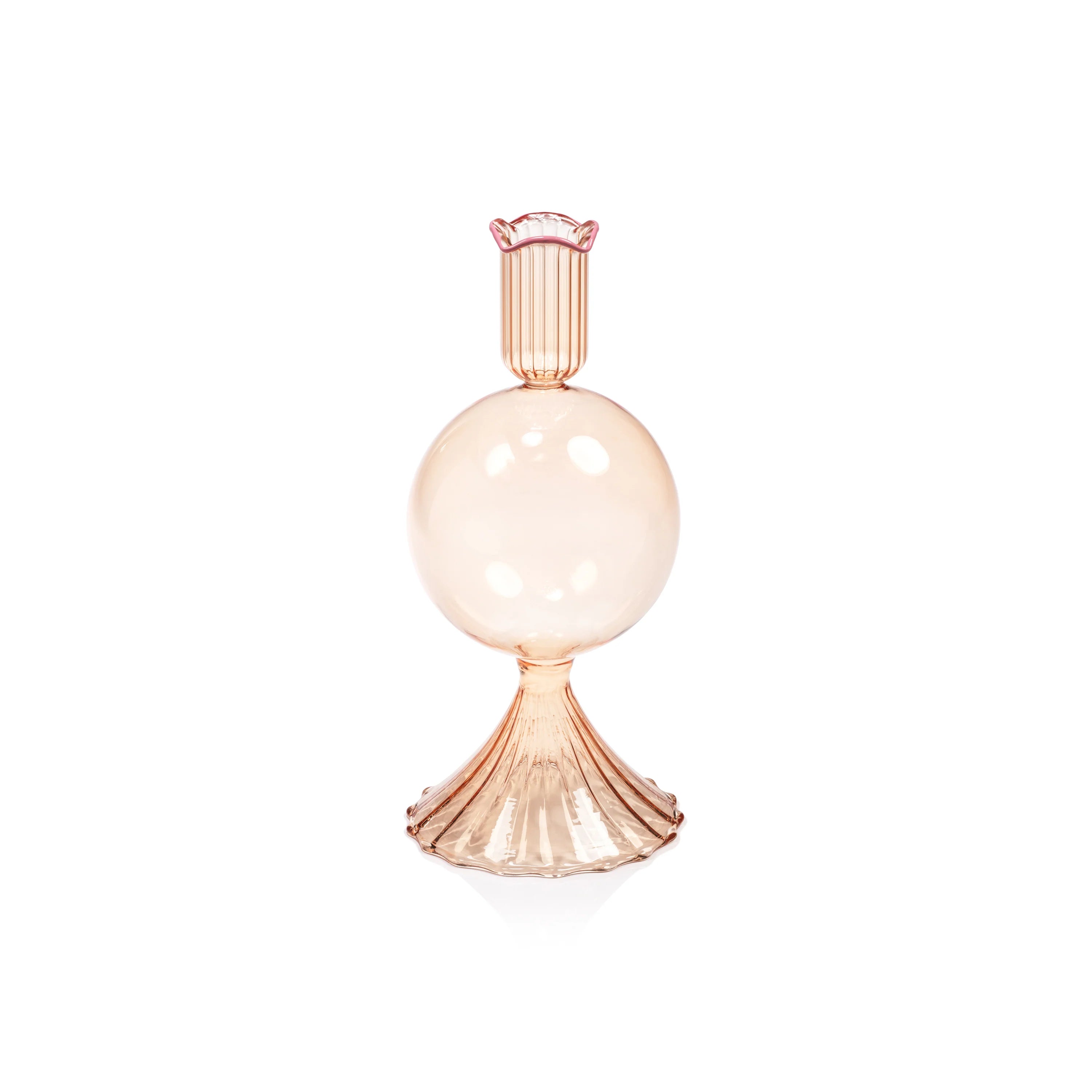 The Treviso Bulb Glass Vase features a gracefully curved silhouette, creating a soft, organic aesthetic that complements both contemporary and classic interiors. Its sleek, transparent body allows flowers to take center stage while the subtle Peach rim adds a warm, sophisticated touch. Designed to hold small bouquets, single stems, or dried flowers, this vase brings a sense of refinement to any setting.