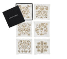 Silhouette Mexican tapestry provide the inspiration for this cocktail napkin set. Use them to serve cocktails from your bar cart pre-dinner party. The metallic embroidery will surely lend a touch of glamour to cocktail hour.