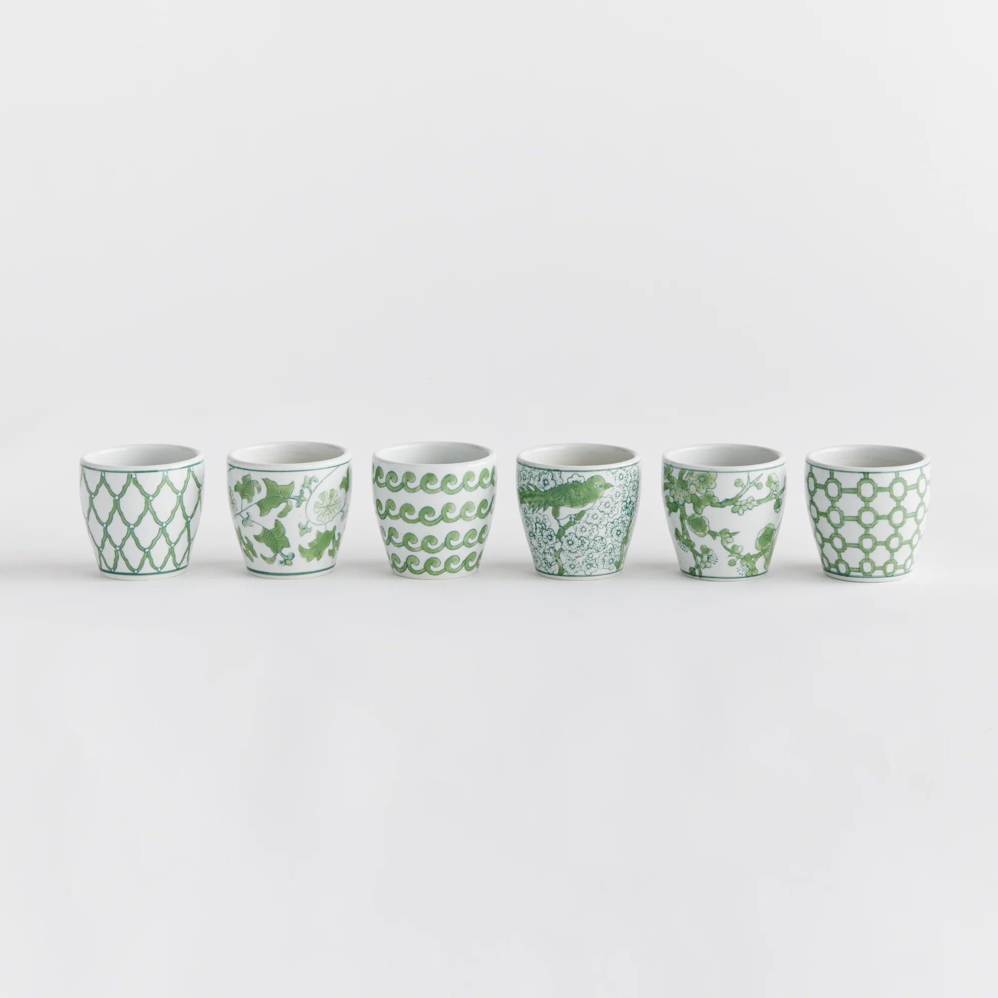 Elevate any living space with the IMPERIAL MINI FLOWER POTS - GREEN AND WHITE. Use as a stylish herb pot on a well-lit kitchen windowsill or add a touch of classic charm to any bookshelf, desk, or entryway console. For cohesive chinoiserie decor, pair with larger coordinating planters. Fill with seasonal blooms, moss, or use as a decorative accent to bring a touch of elegance to any room.