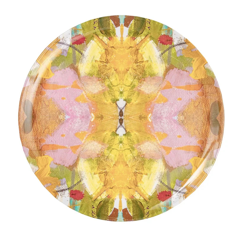 Bring a burst of color and energy to your table with the Jardin Yellow Melamine Plate by Laura Park Designs. Featuring a vivid abstract pattern in warm tones of yellow, orange, pink, and hints of green, this dinner plate is inspired by blooming gardens and painterly brushstrokes. The high-gloss finish enhances the vibrant design, giving the plate a ceramic-like appearance while maintaining the easy-care qualities of melamine.