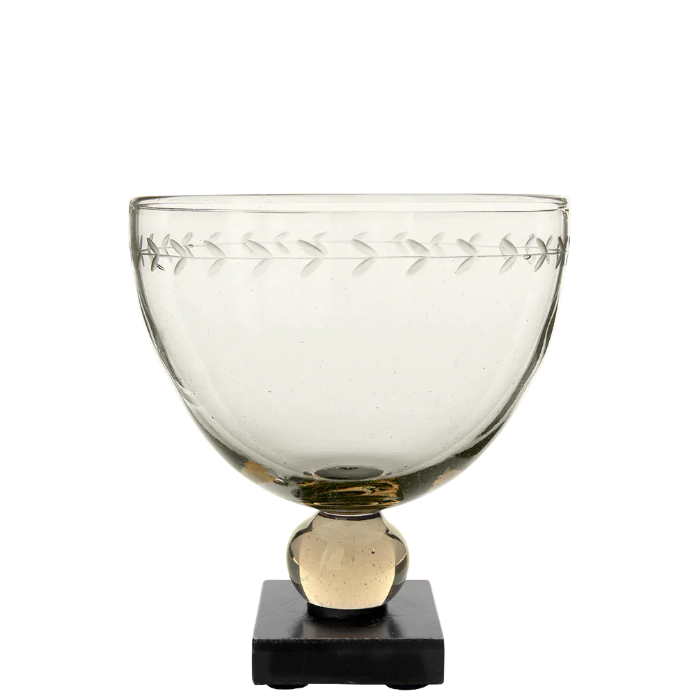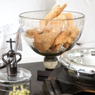 Elevate your dining experience with the Jan Barboglio Clarity Large Serving Bowl, a masterpiece that seamlessly blends artistry and functionality. Crafted through the ancient technique of mouth-blown glass, this bowl embodies centuries-old glass-blowing craftsmanship. The bowl rests gracefully on a hand-forged iron stand, adding both stability and a touch of rustic elegance to the ensemble. The intricate laurel motif delicately encircles the rim of the clear glass bowl, showcasing the attention to detail and artistic flair that defines Jan Barboglio's creations.