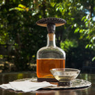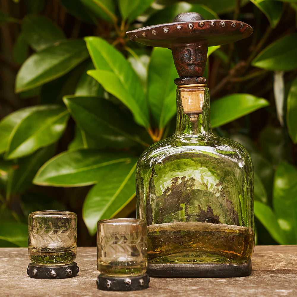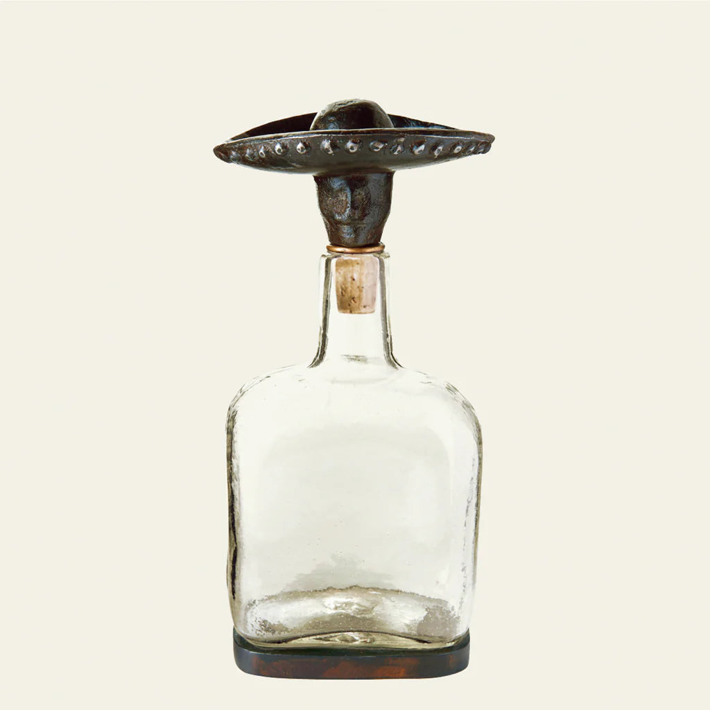 Tito Decanter Mouth blown glass bottle with laurel engraved sides and small mariachi topper. Elevate your home bar with this stunning decanter. Featuring hand-blown glass and intricate laurel engravings, and topped with a charming mariachi figure, it's a piece of art that's perfect for displaying and serving your favorite spirits. Cheers to indulgence and sophistication. From the intricate laurel engravings to the charming mariachi figure to the hand-blown glass, each element of the Tito Decanter was thoughtfully crafted to make it a stunning piece of art. Elevate your home bar with this sophisticated decanter and impress your guests with your impeccable taste. Cheers to indulgence and luxury.- Tito Decanter