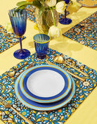 Elevate your everyday dining with the Rainbow Blue Dinner Plate from La Double J—a true celebration of Italian craftsmanship and joyful design. Sold as a set of two, each plate is crafted from the highest quality Italian porcelain in collaboration with Ancap, one of Italy’s most esteemed porcelain makers. The rich Rainbow Blue trim brings a bold pop of color, while the hand-painted 18k gold rim, delicately applied by Veronese artisans, adds a luxurious finish that shimmers with every glance.