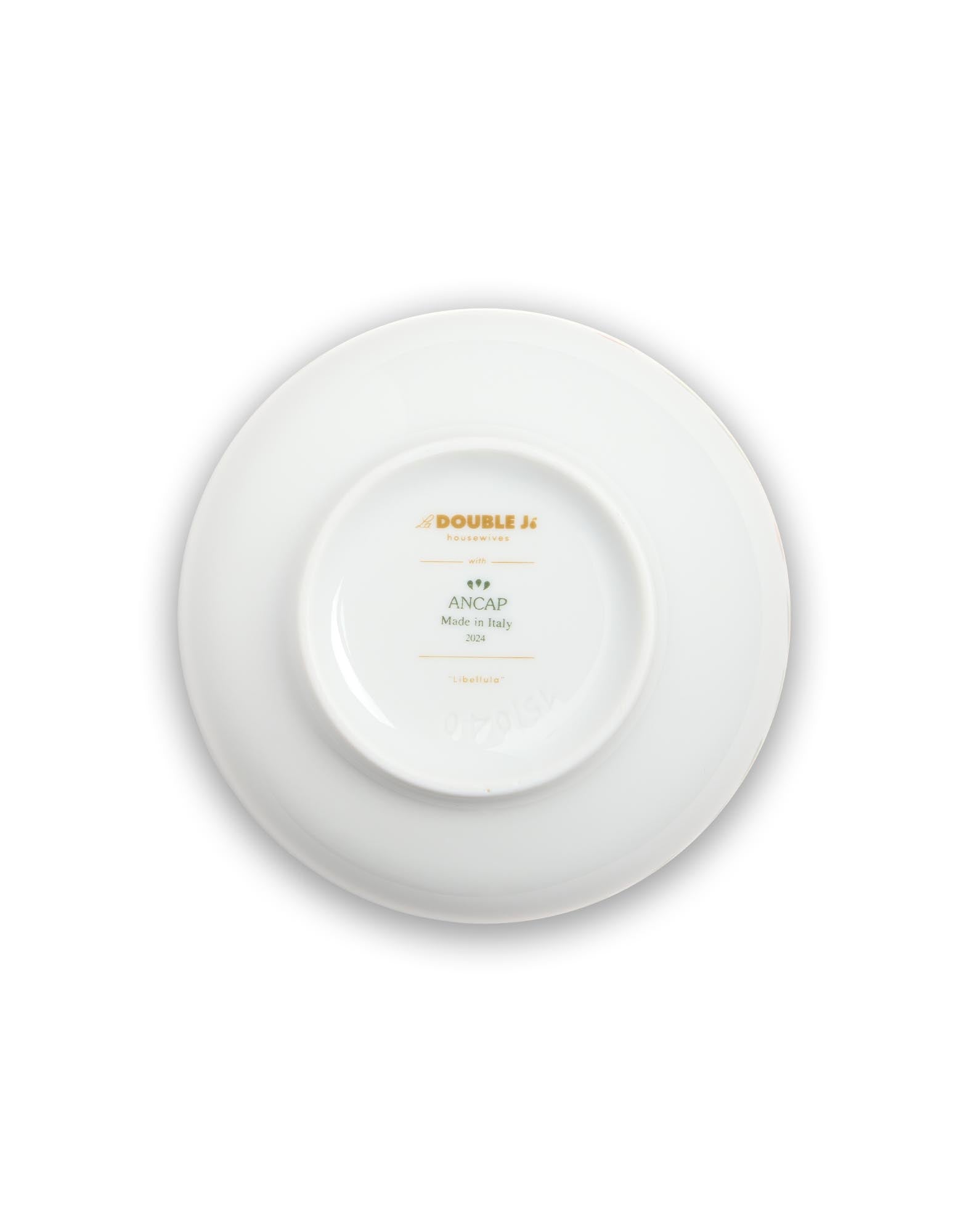 Elevate your snacking ritual with the La DOUBLE J Libellula Green Snack Bowl, crafted from premium Italian porcelain for exceptional quality and durability. Its elegant design features a delicate gold trim that adds a touch of sophistication to any table setting.