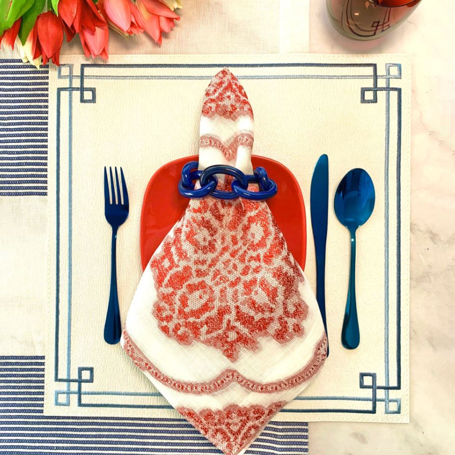 With 2-tone embroidery and geometric design, you can't go wrong with the Link Mat Collection. This easy care mat group is sure to enhance your table!