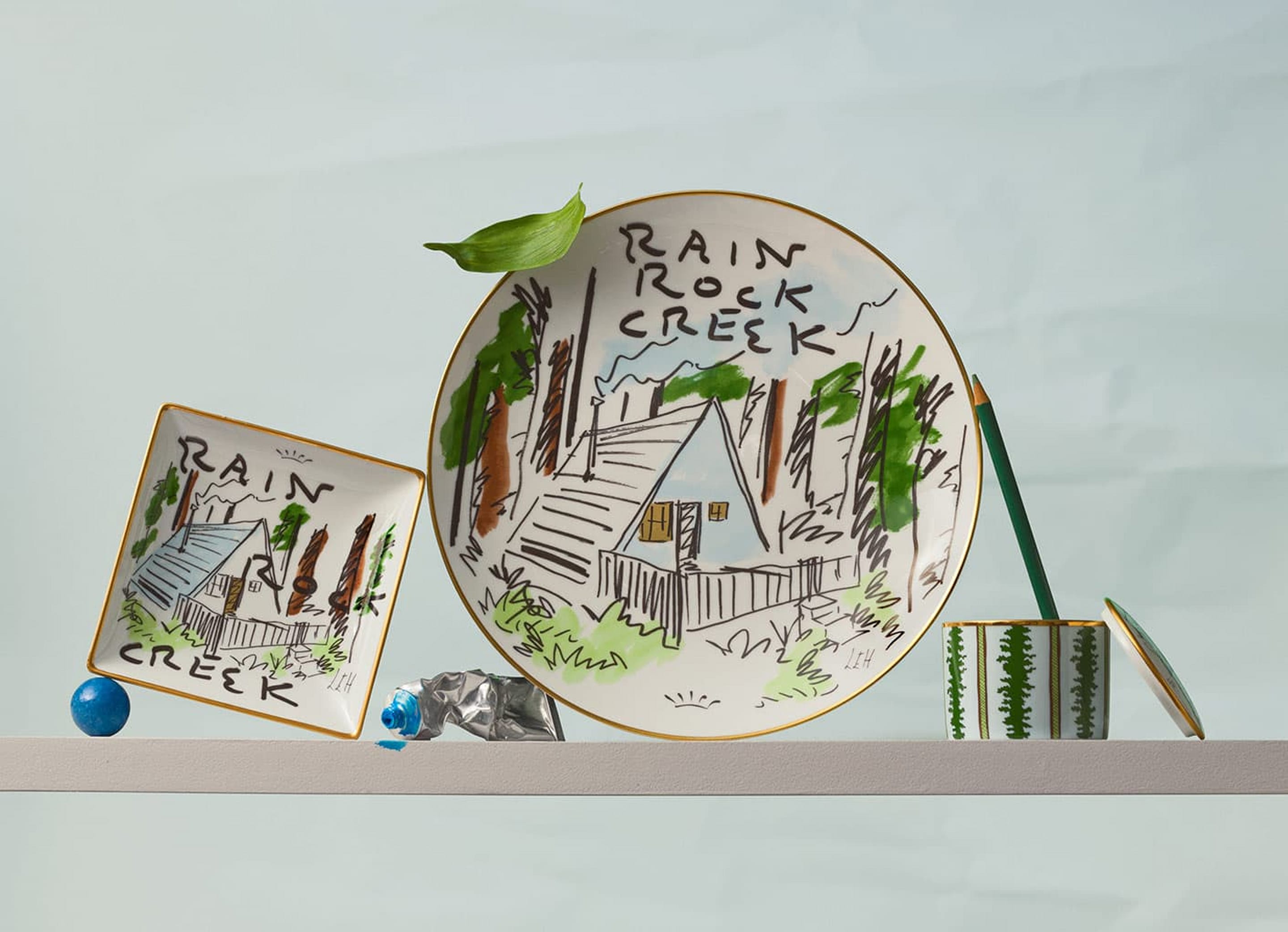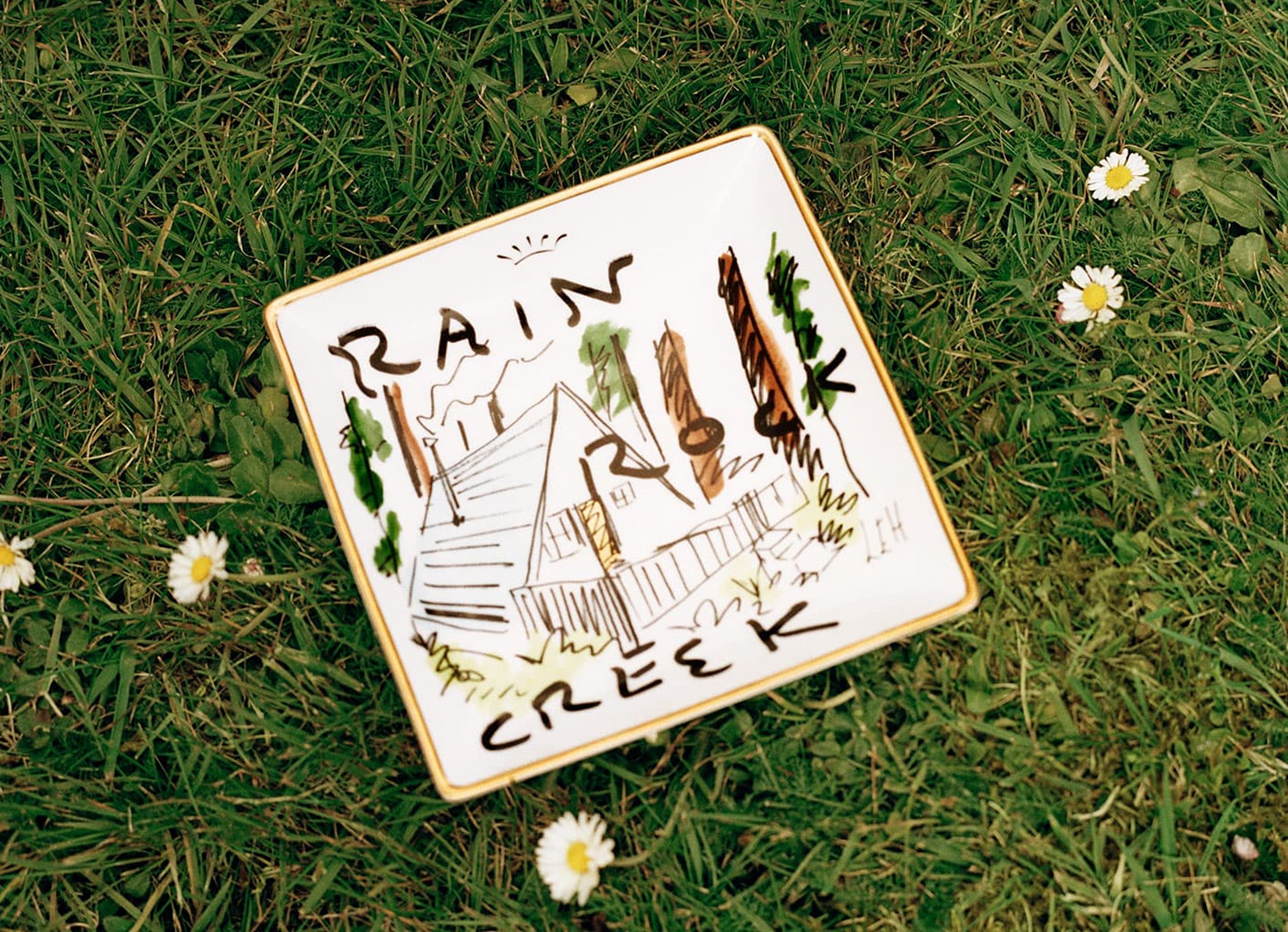 Rain Rock CreeK (FOUGERE) Experience the tranquility of Rain Rock Creek in the Big Sur as dawn breaks and sunlight filters into a wooden bungalow. The crashing waves in the distance and the Pacific's deep blue waters inspire this serene design.