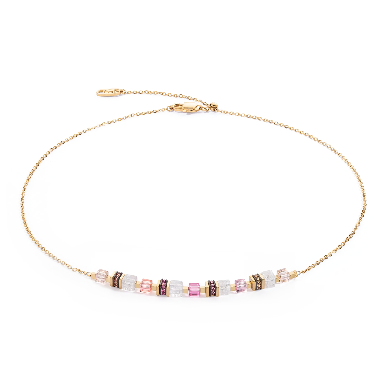Delight in the simple elegance of our Mini Cubes & Chain necklace in gold multicolour - a sophisticated piece of jewellery that enchants with its delicate design and the unique charm of the materials. This piece of jewellery combines the timeless beauty of real stone cubes such as rock crystal with the dazzling brilliance of Swarovski crystals. The innovative sliding clasp ensures a customised fit and allows you to adjust the length of the chain as desired, ensuring optimum comfort and versatile styling options.