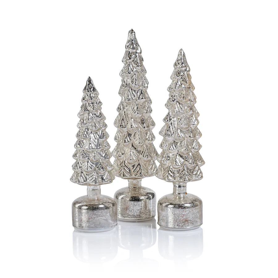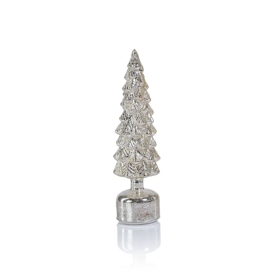 Elevate your holiday décor with the exquisite Mountain Pine Rotating LED Tree from Zodax. Finished in radiant antique silver, this tabletop tree captures the sparkling essence of a freshly frosted pine, offering a blend of classic charm and modern elegance. Its gentle rotation adds subtle movement, creating a captivating display as the LED lights shimmer across its textured branches.