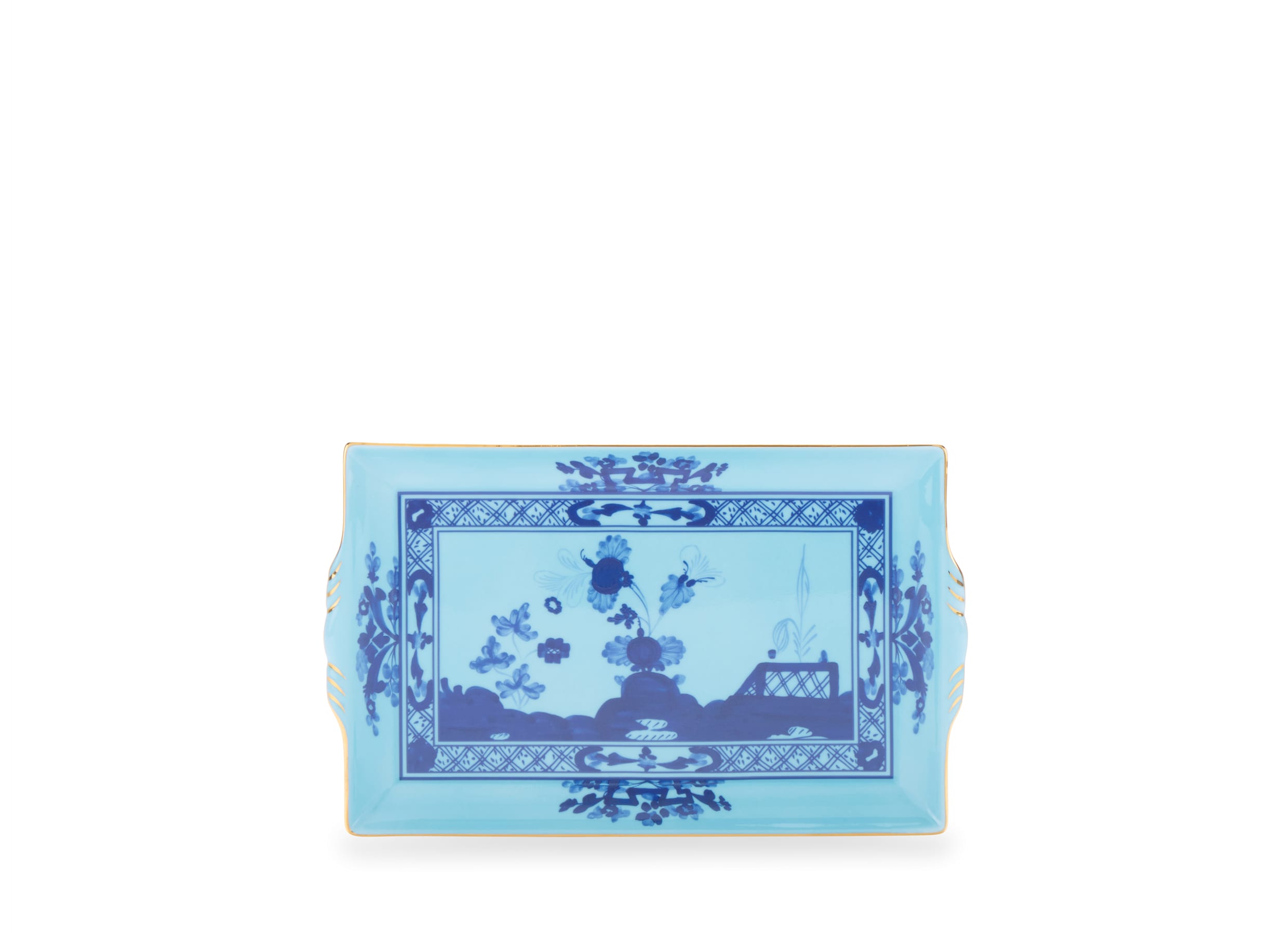 Rectangular platter with handles, Azalea pattern. Oriente Italiano Collection.