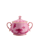 This sugar bowl also invites creative expression in tablescape design. Its vibrant color and floral pattern pair beautifully with other pieces in the Oriente Italiano collection, whether harmonized with matching tones or contrasted against complementary shades like Bario green, Iris blue, or Azalea pink. Together, they form a richly layered, modern yet historically rooted setting that is as functional as it is beautiful.