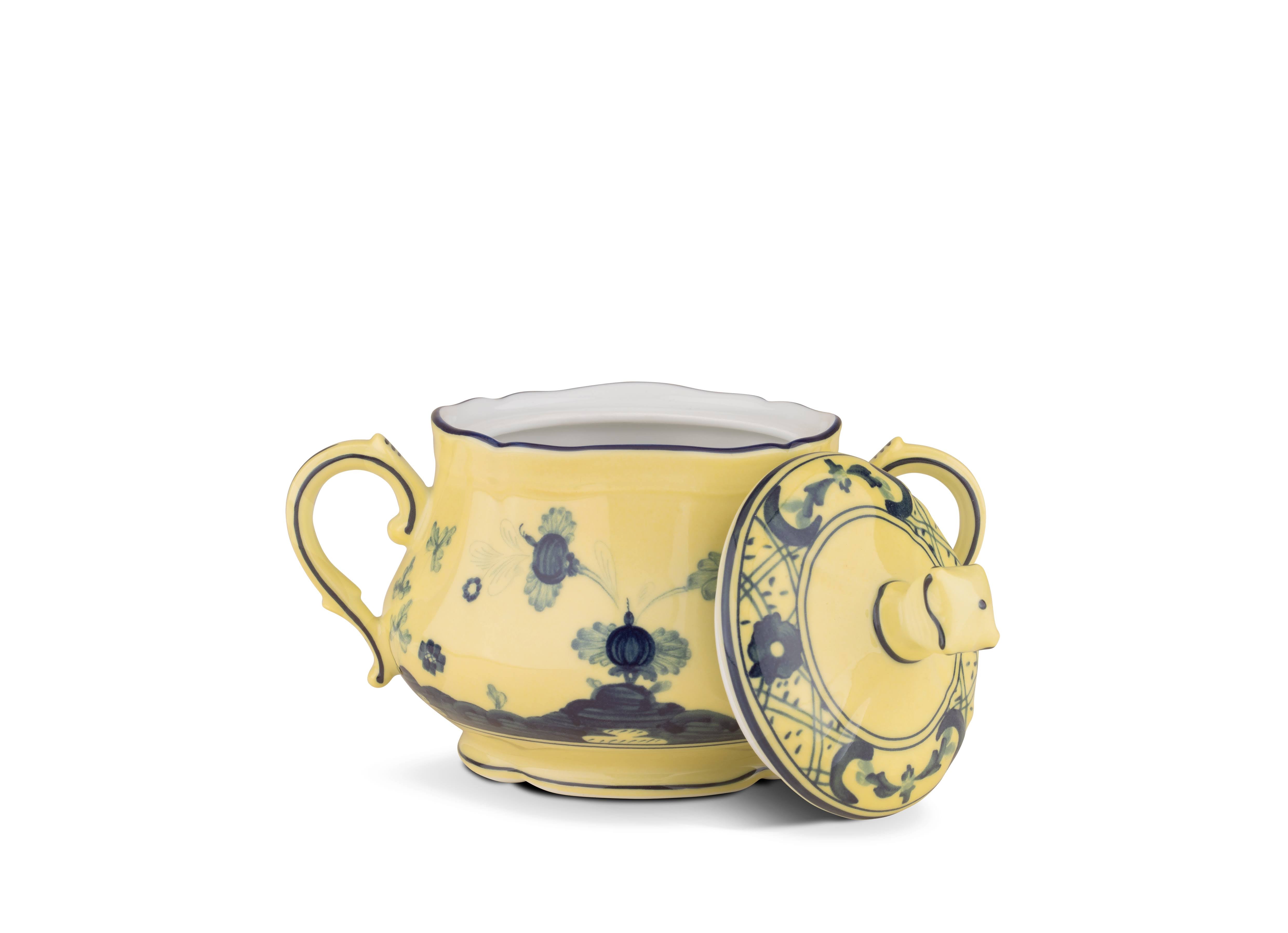 The Oriente Italiano Citrino Sugar Bowl by Ginori 1735 is a radiant expression of Italian craftsmanship and Oriental elegance. Rendered in luminous porcelain, this piece belongs to the esteemed Oriente Italiano collection—a design series that seamlessly blends Florentine porcelain-making tradition with the charm of Eastern-inspired motifs.