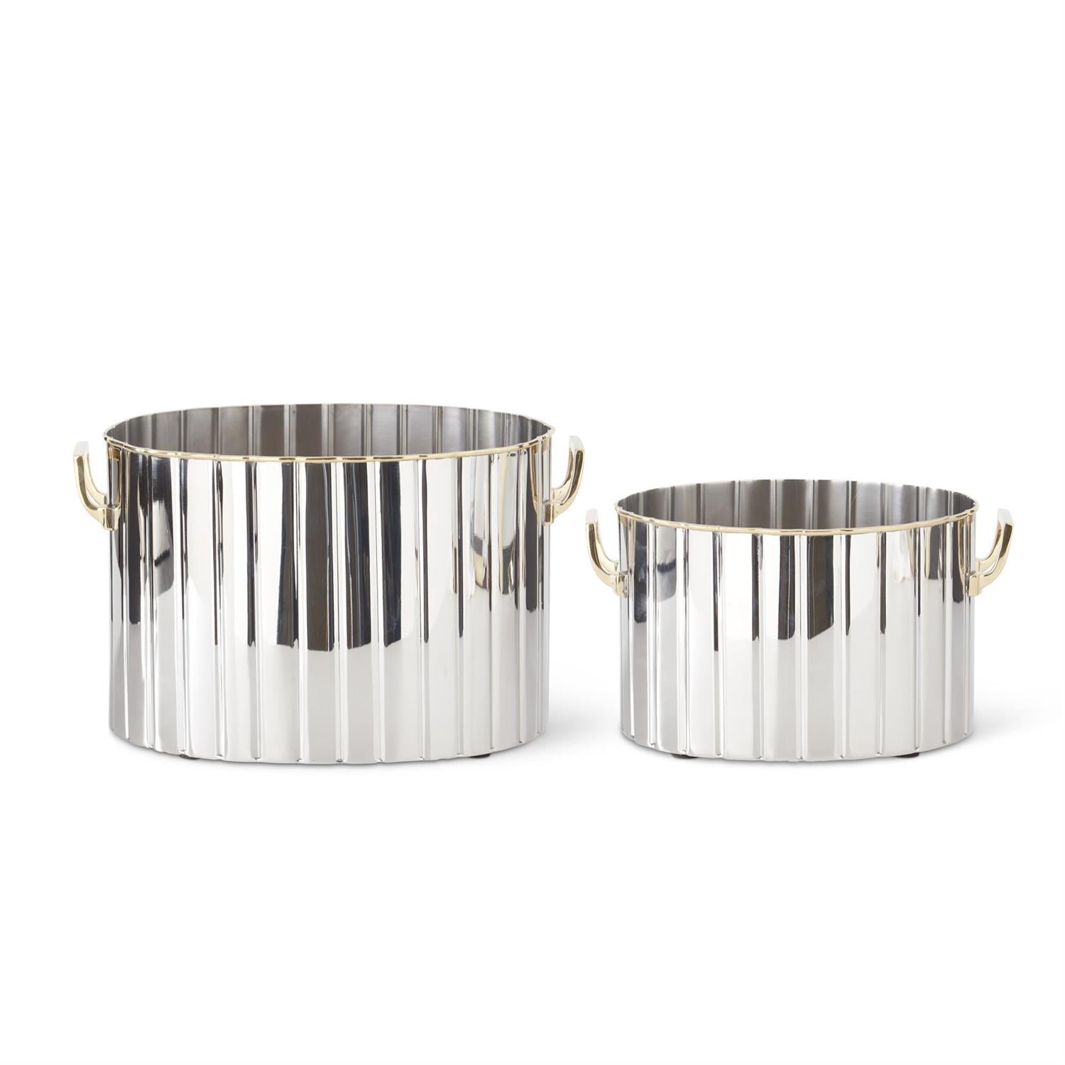 Oval Silver Ribbed Wine Chiller with Gold Rim