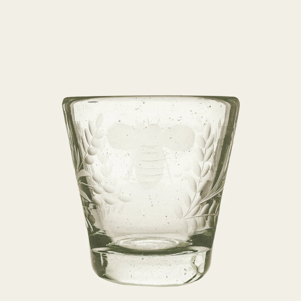 Elevate your drinkware collection with the charming Wee Bee Mouth Blown Glass DOF. This delightful double old-fashioned glass is expertly crafted from recycled glass, ensuring a sustainable choice without compromising on style. Each piece is mouth-blown, making every glass unique with subtle variations that add to its character. The whimsical wee-bee engraving adds a touch of playful elegance, making it perfect for any occasion.
