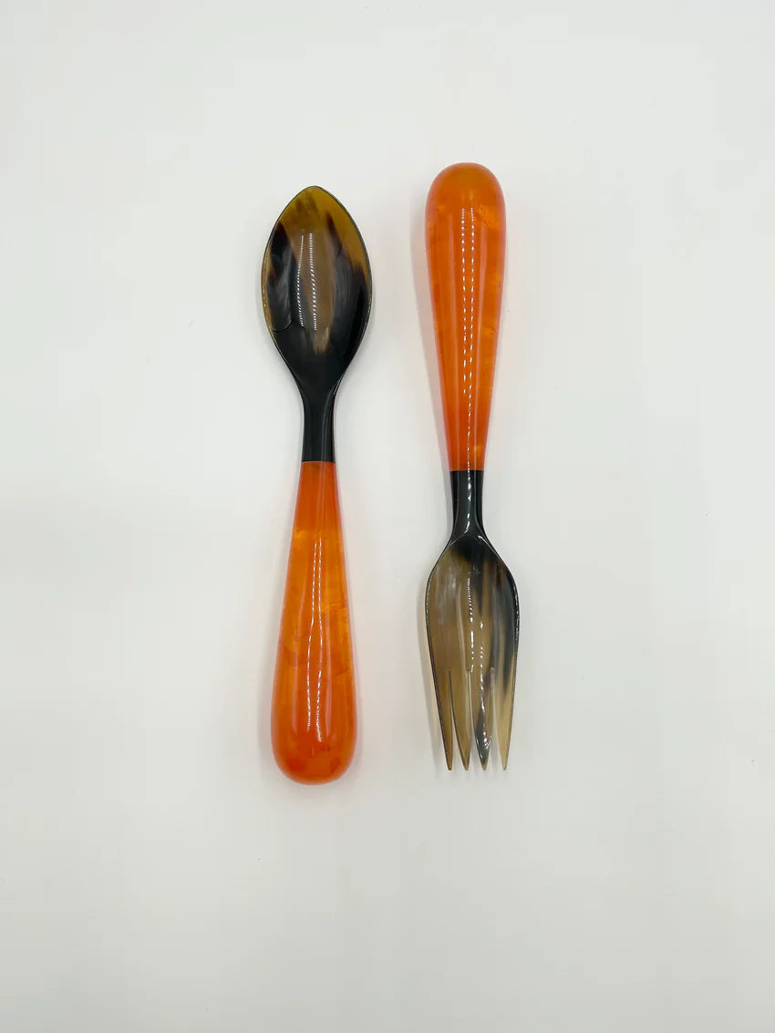 • NOTE: The Bowl of the Spoon , and the points, slots, tines, root, back, neck, and handle of the fork could vary from set to set. (Some darker or lighter than the others.)