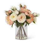 14 INCH PINK & WHITE AUSTIN ROSE PREMADE IN GLASS VASE WITH FAUX WATER
