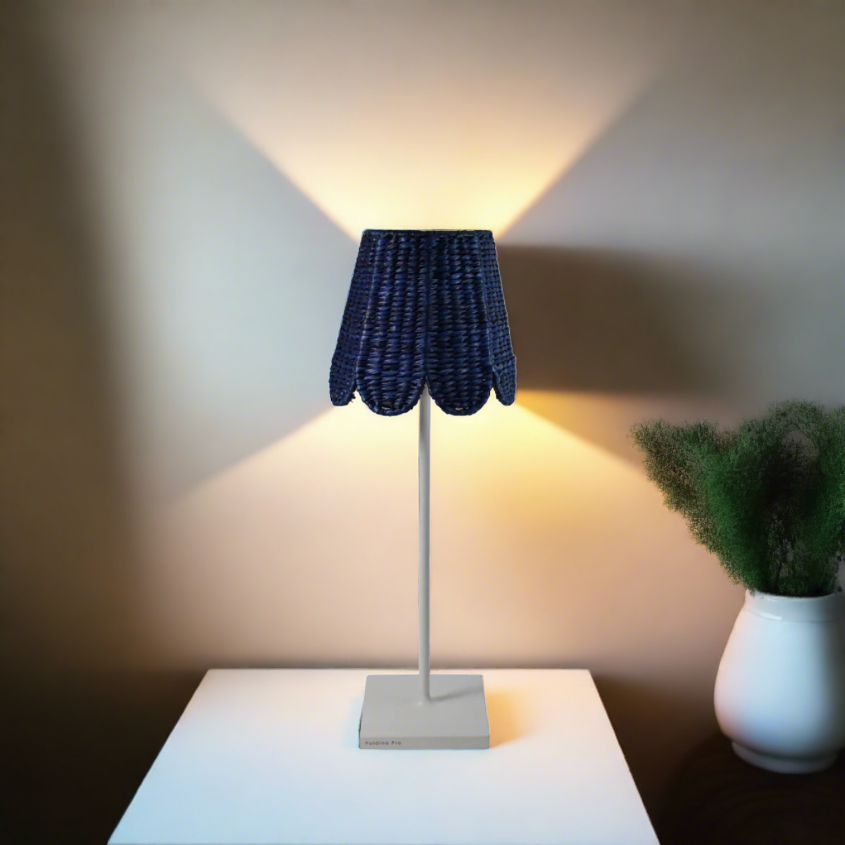 Introducing our collaboration with Zafferano for their Poldina cordless lamp collection. Our first style fits the Poldina Pro/Mini lamp. This handwoven navy seagrass lampshade with signature Maison Maison scallops along the bottom has no harp fitting.