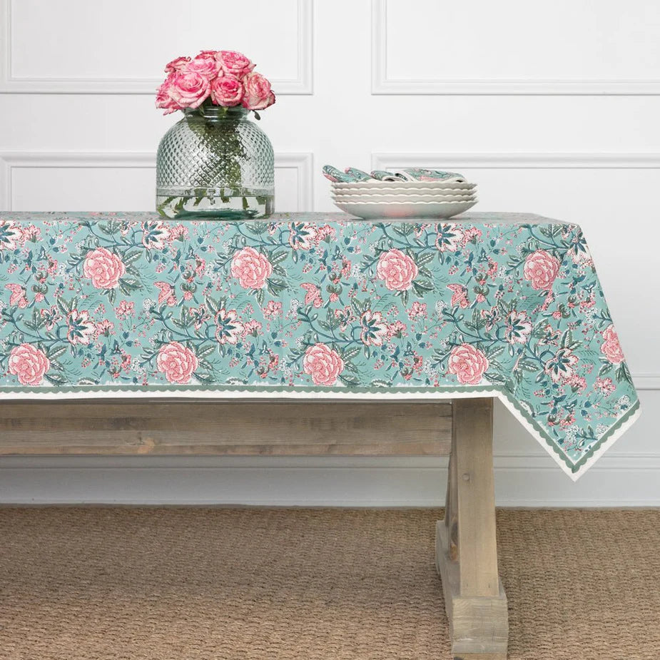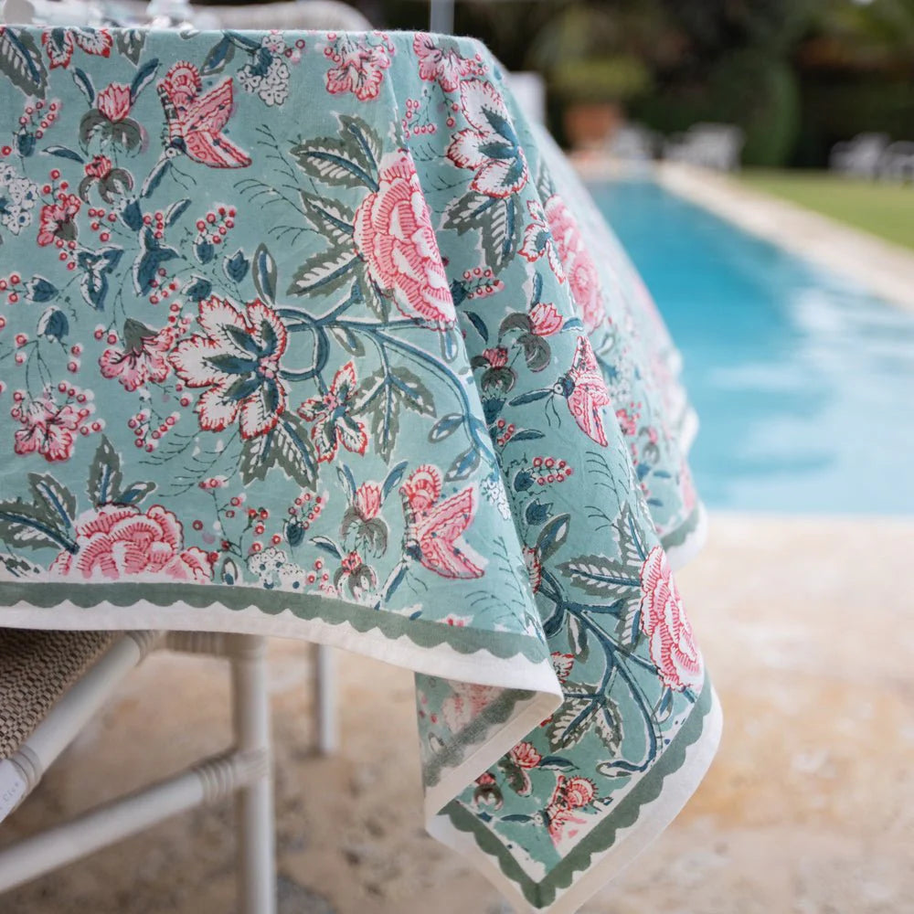 Pomegranate BUTTERFLY GARDEN AQUA & ROSE TABLECLOTH