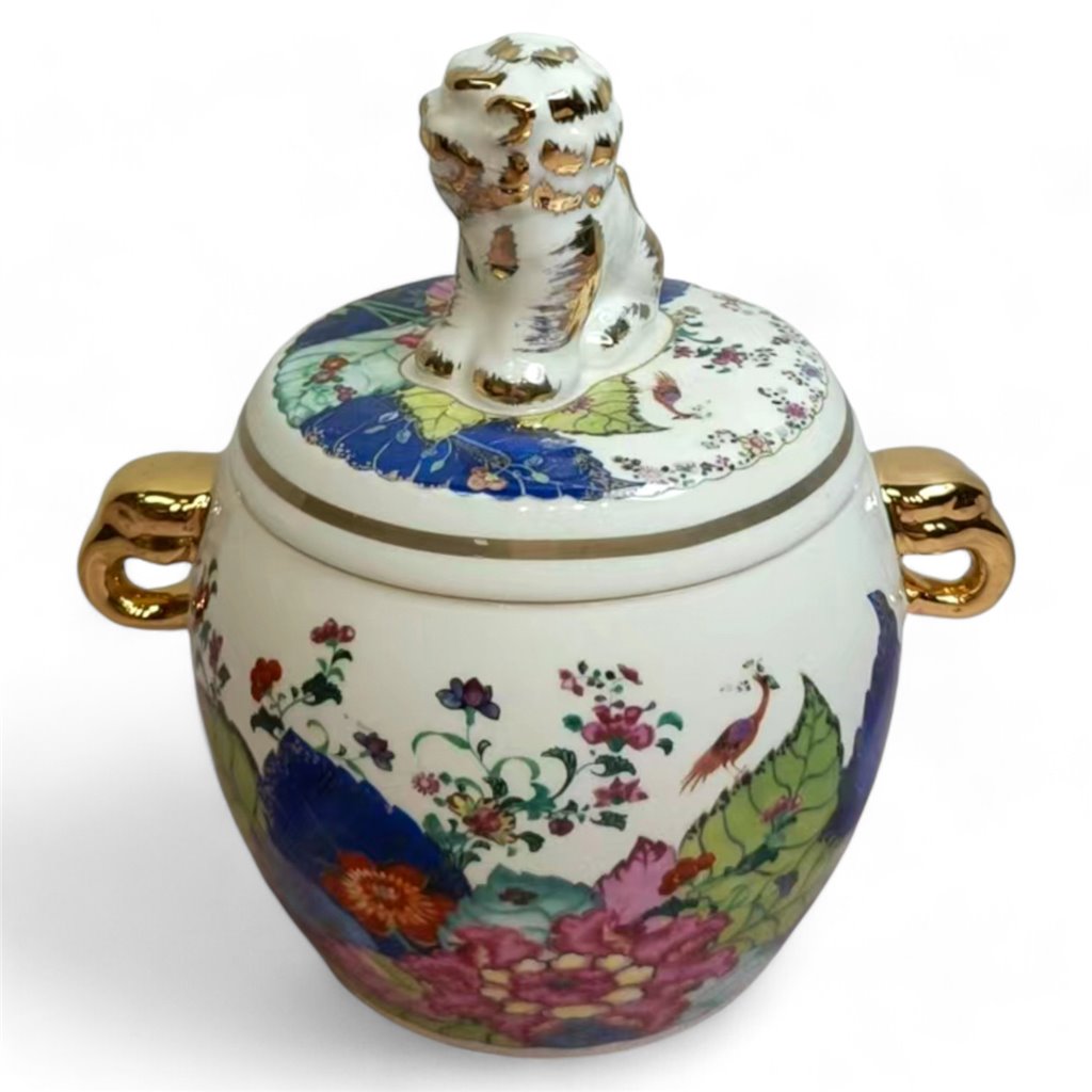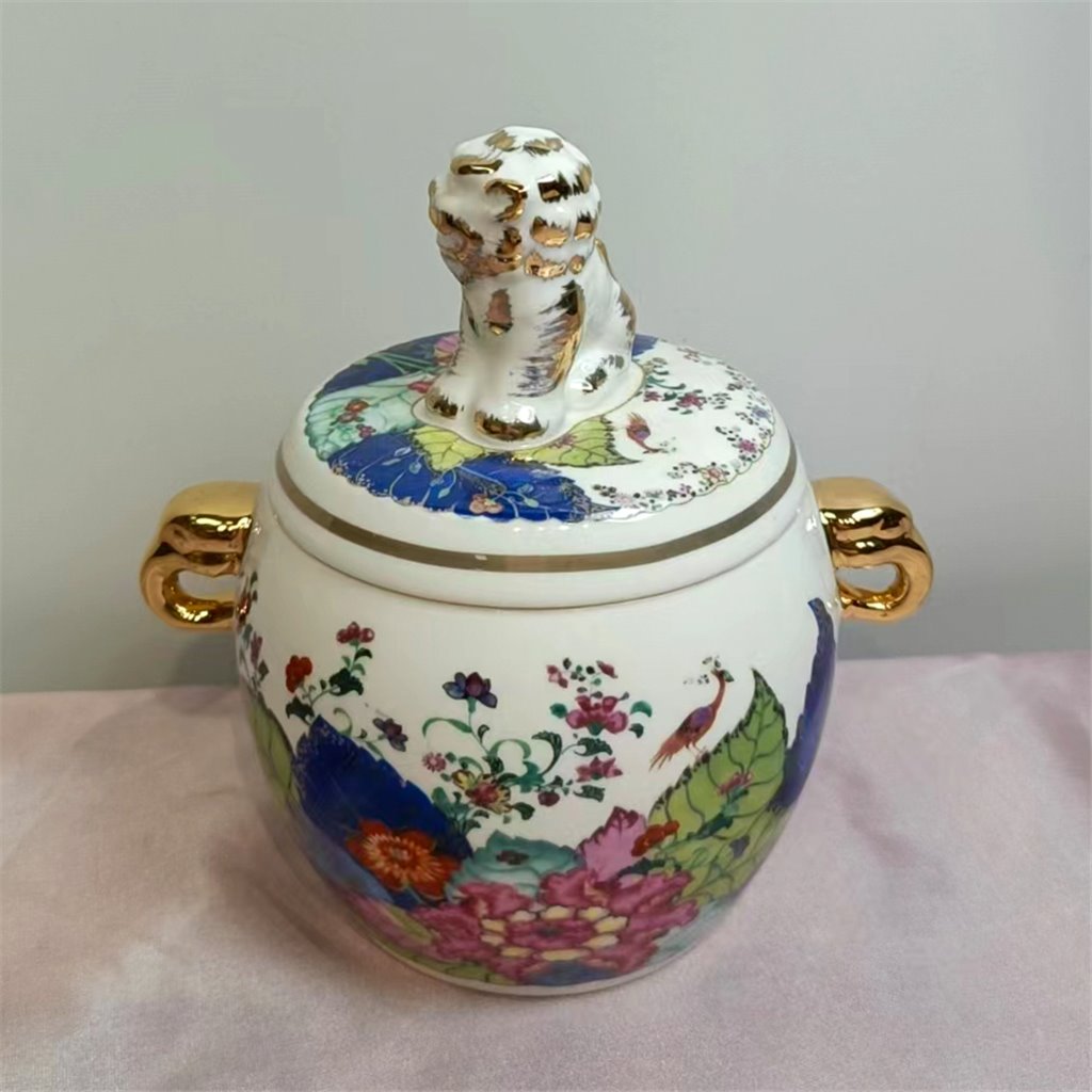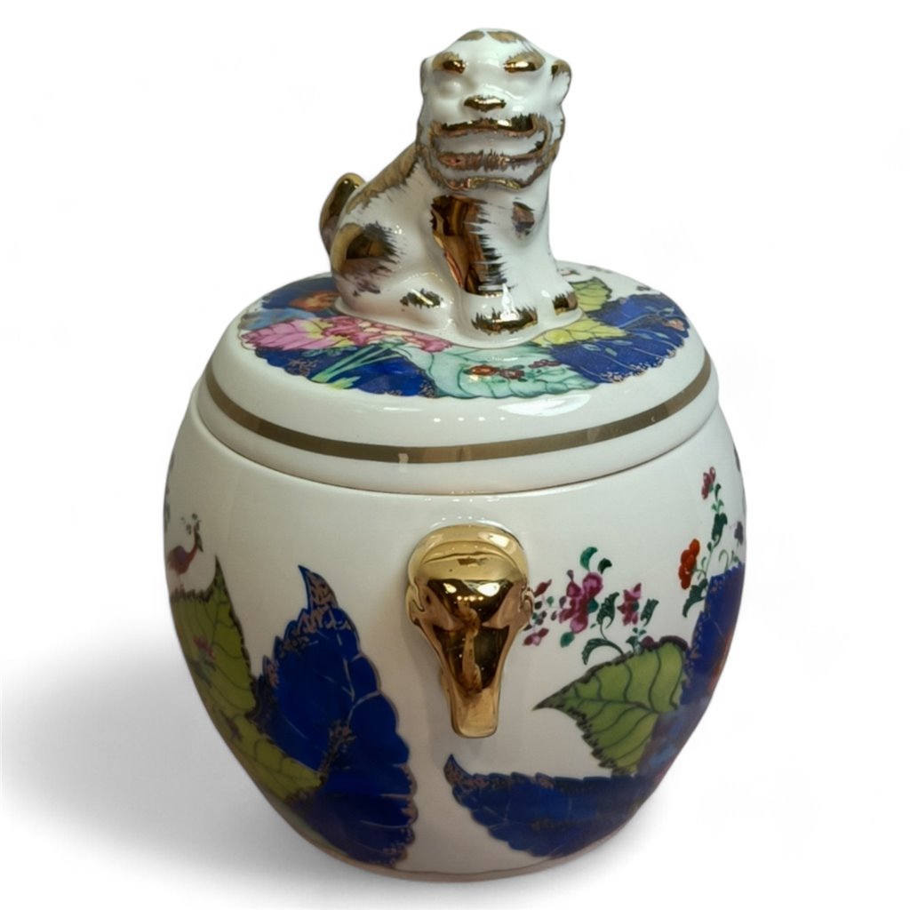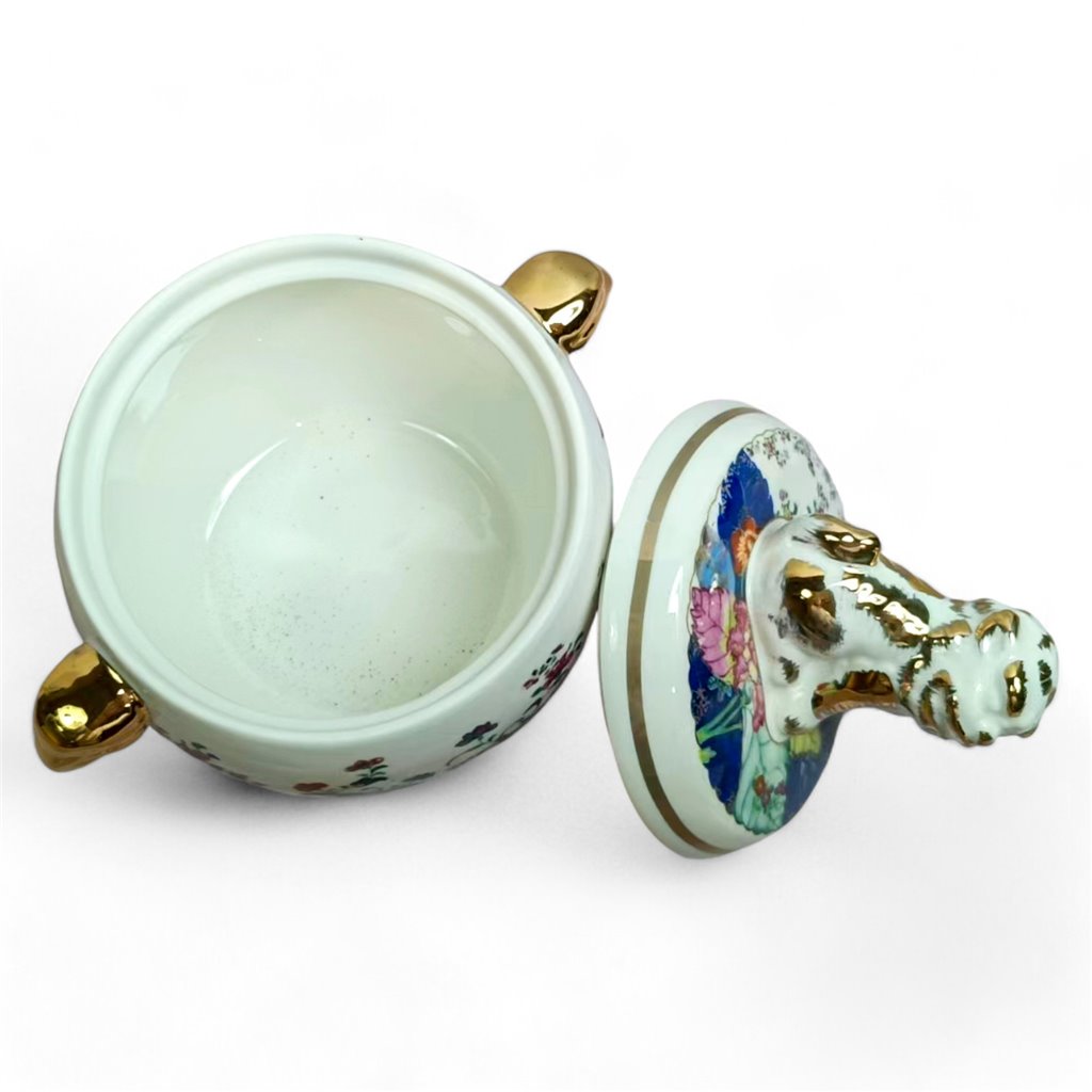 Danny's Fine Porcelain Lidded Box features the timeless Tobacco Leaf pattern, renowned for its intricate beauty and vibrant hues. Crafted with exquisite attention to detail, the box showcases a delicate floral motif in rich blues, greens, reds, and gold accents, creating an elegant, heirloom-quality piece.