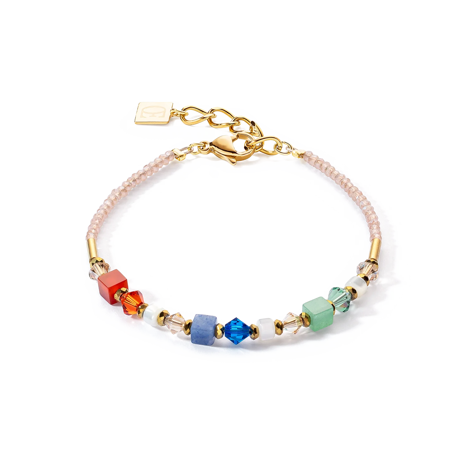 Good vibes come as standard with the bright, bold colours of this delicate bracelet. The sensational colour spectrum of our dopamine-look models is largely created by natural gemstones like green and blue aventurine, fiery carnelian and coloured Swarovski® crystals.
