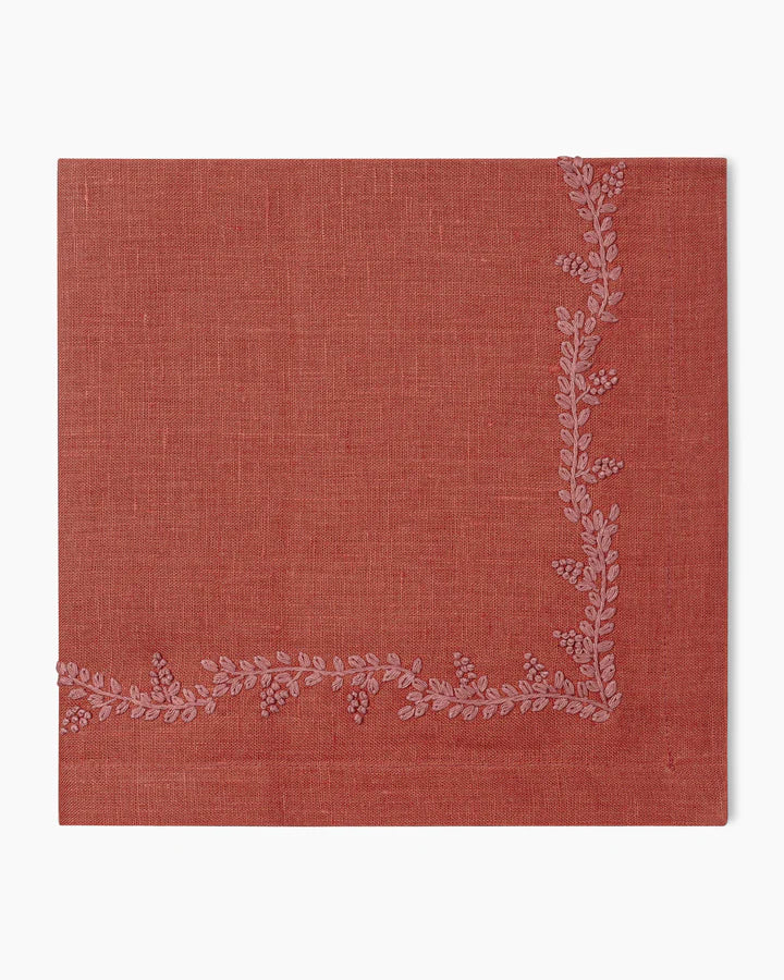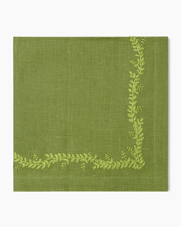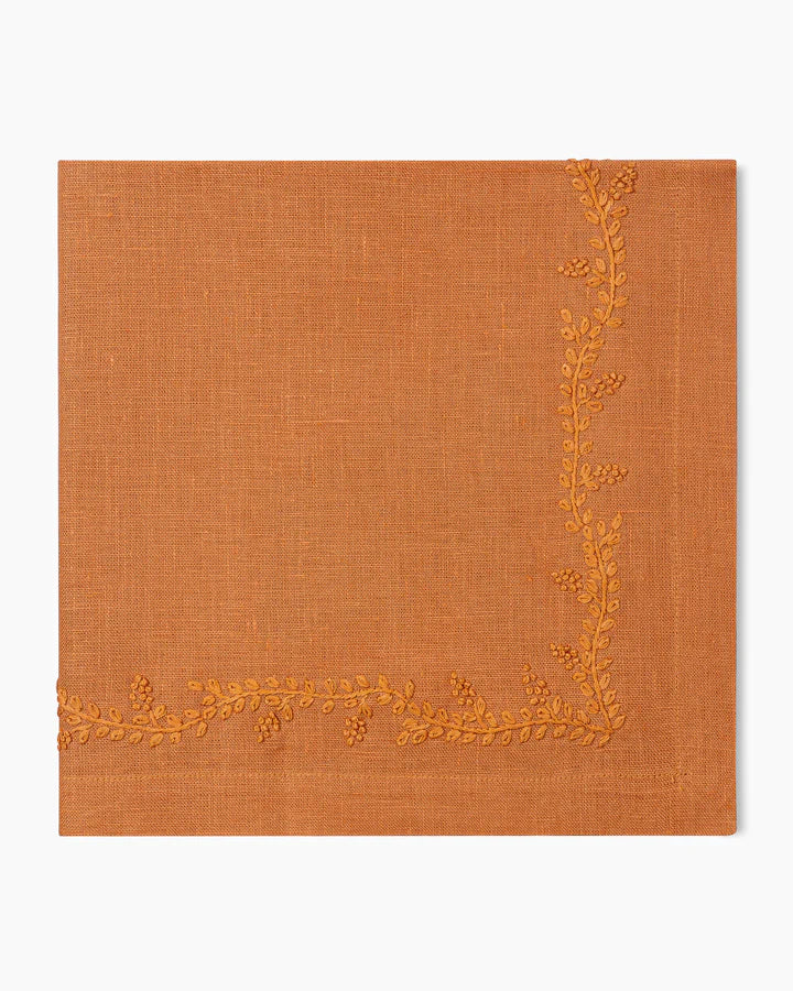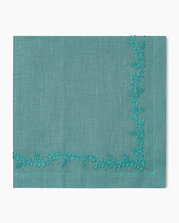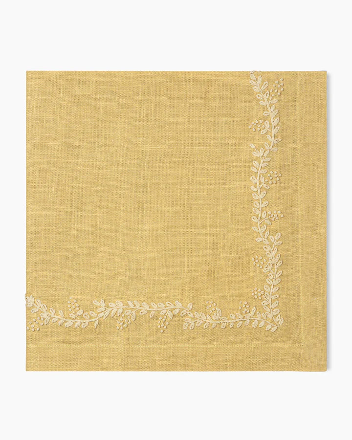 Crafted from luxurious linen, complete with a polished and timeless mitered hem and intricate hand-embroidery on all sides. Indulge in the sophistication of our PRISM VINE NAPKIN, made with exquisite linen and finished with a refined mitered hem and delicate hand-embroidery on all sides. Elevate your dining experience with this luxurious and timeless addition to your table setting.