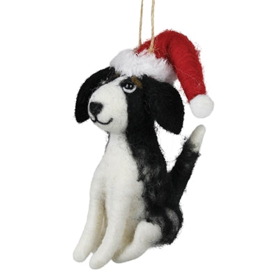 PUPPY WITH SANTA HAT ORNAMENT , FELT