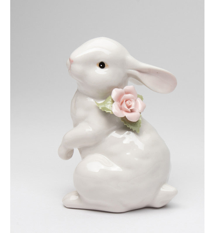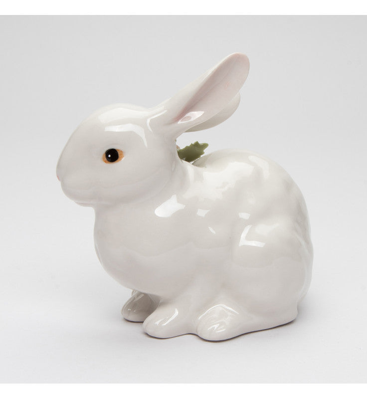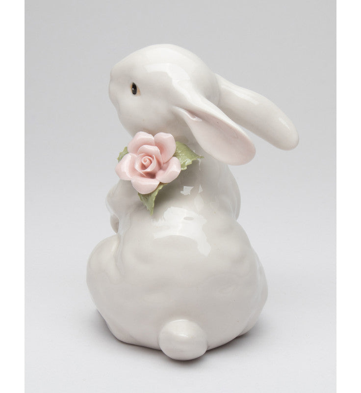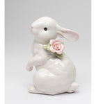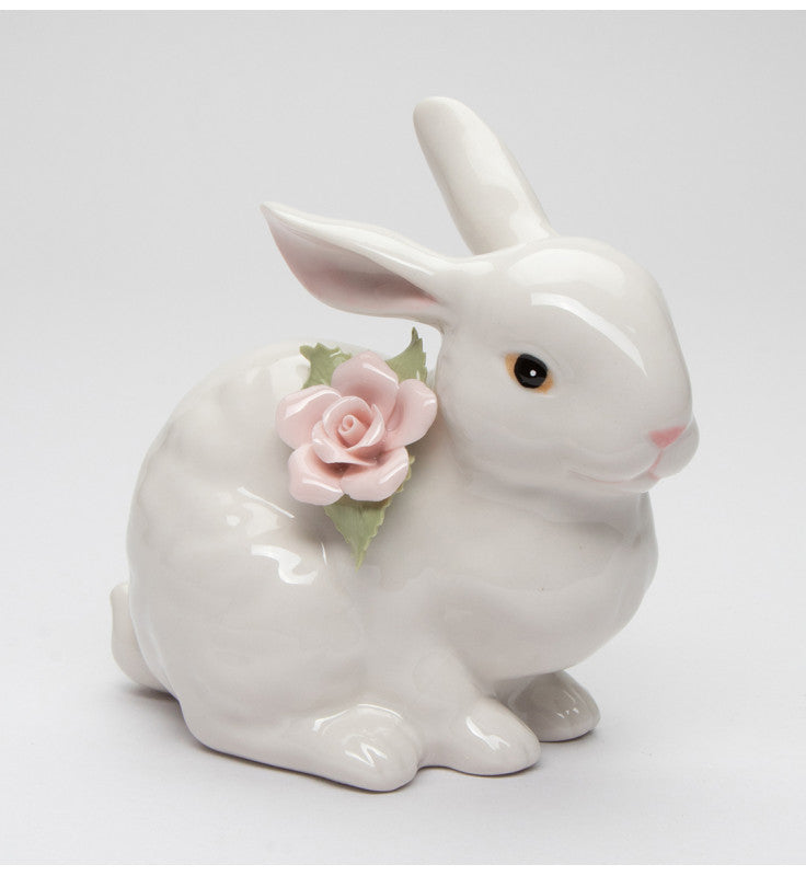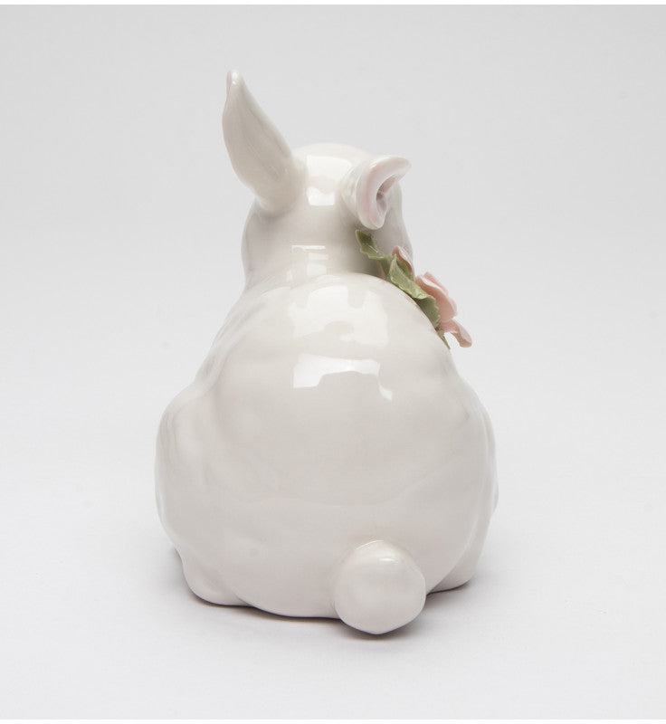 The Crouching Rabbit with Pink Rose features a gentle pose with delicately sculpted details that capture a rabbit in repose. The soft neutral finish and hand-painted pink rose accent enhance its timeless appeal, making it ideal for seasonal décor, Easter tablescapes, or garden-themed displays.