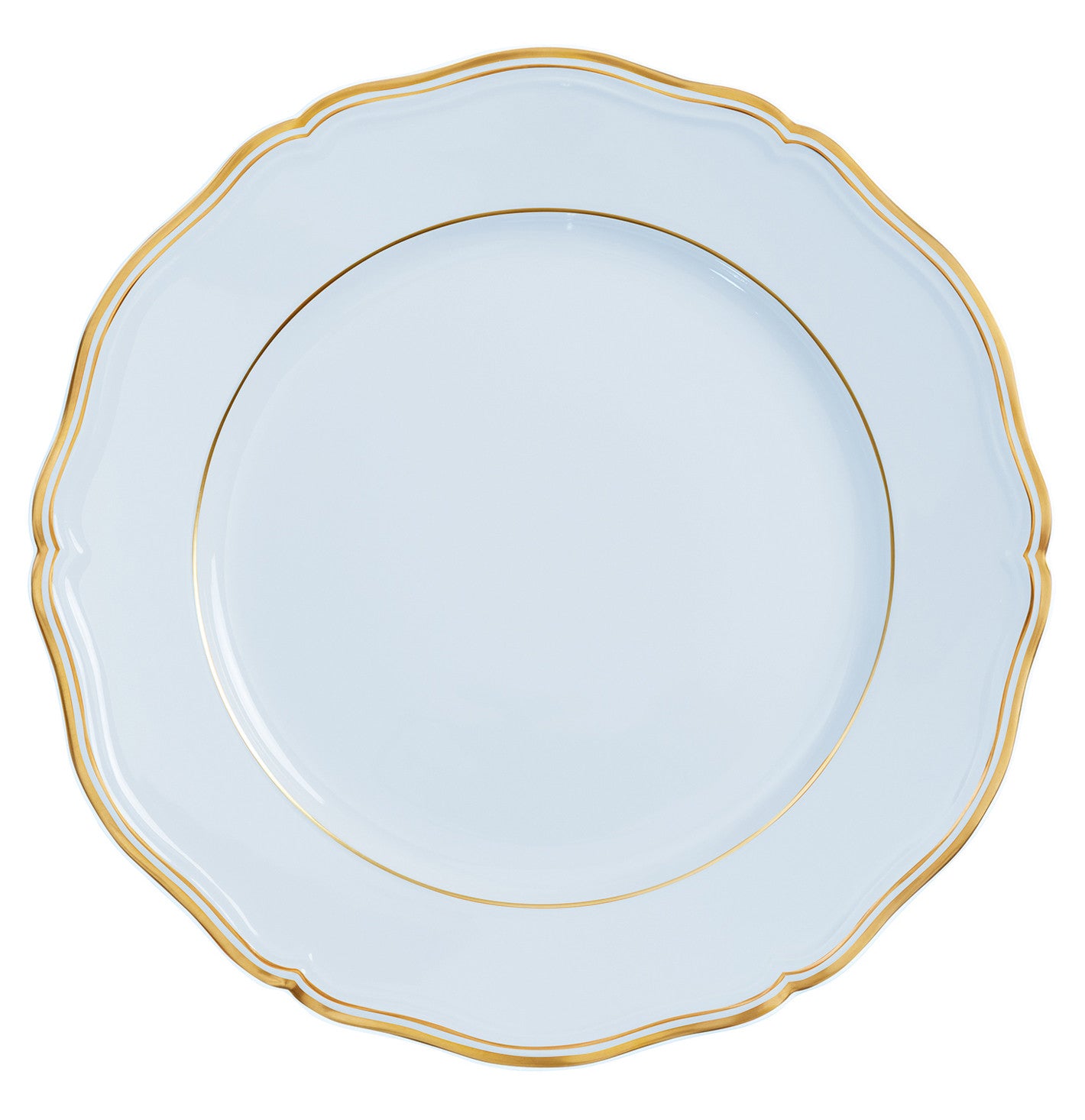 The Raynaud Mazurka Blue Grey Buffet Plate is a stunning piece of fine porcelain crafted in Limoges, France, celebrated for its exceptional artistry and quality. Its elegant blue-grey design brings a touch of sophistication to any table, making it an excellent choice for both everyday dining and special occasions.