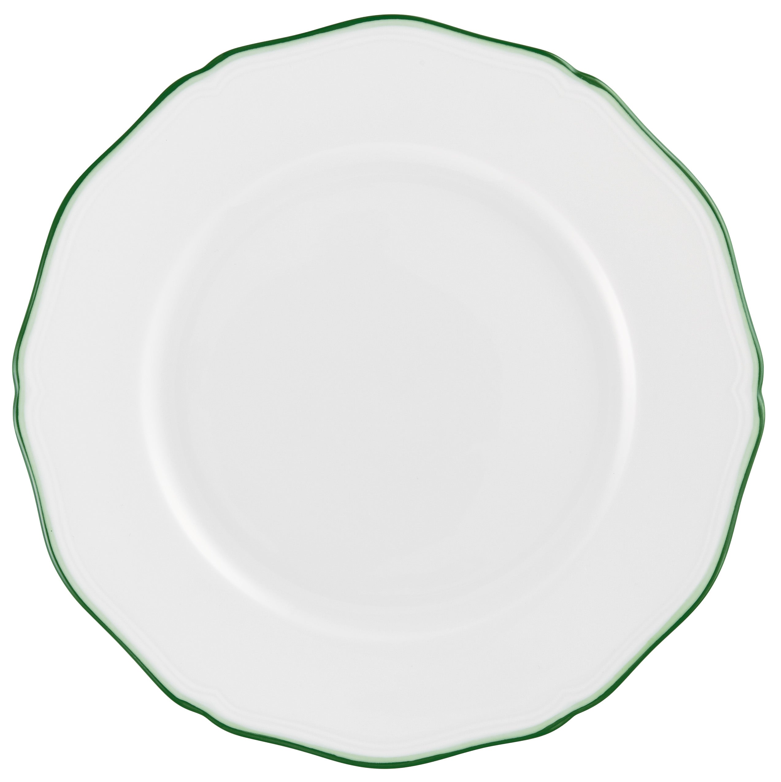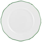 The Raynaud Touraine Filet Green Salad/Cake Plate embodies the elegance and craftsmanship synonymous with fine French porcelain. Handcrafted in the heart of the Limoges region, this plate showcases a hand-painted double filet in two harmonious shades of green, delicately tracing the scalloped edges to create a timeless and versatile design.